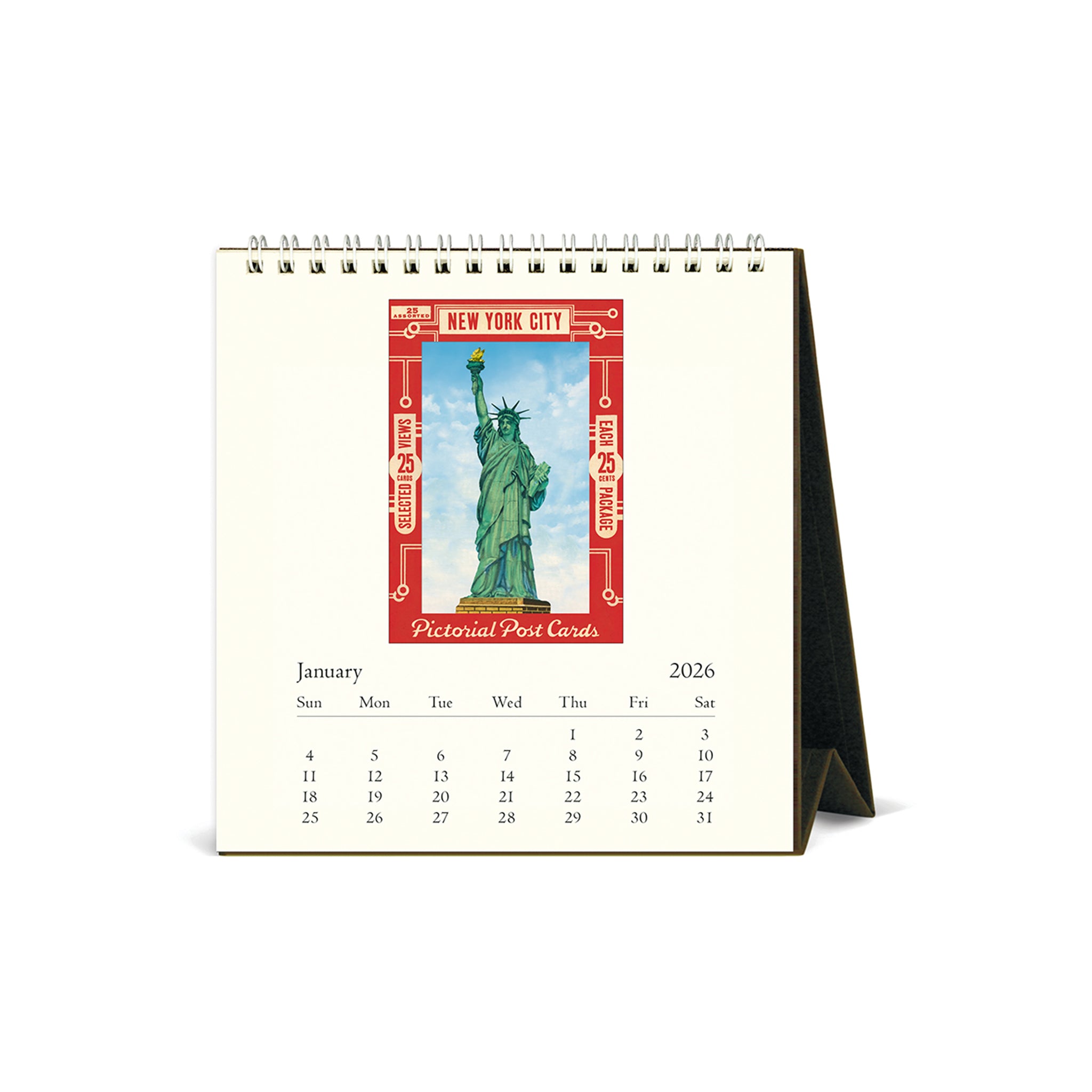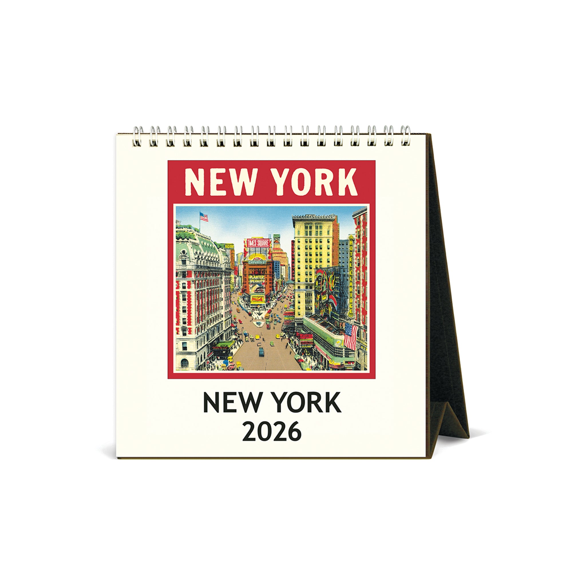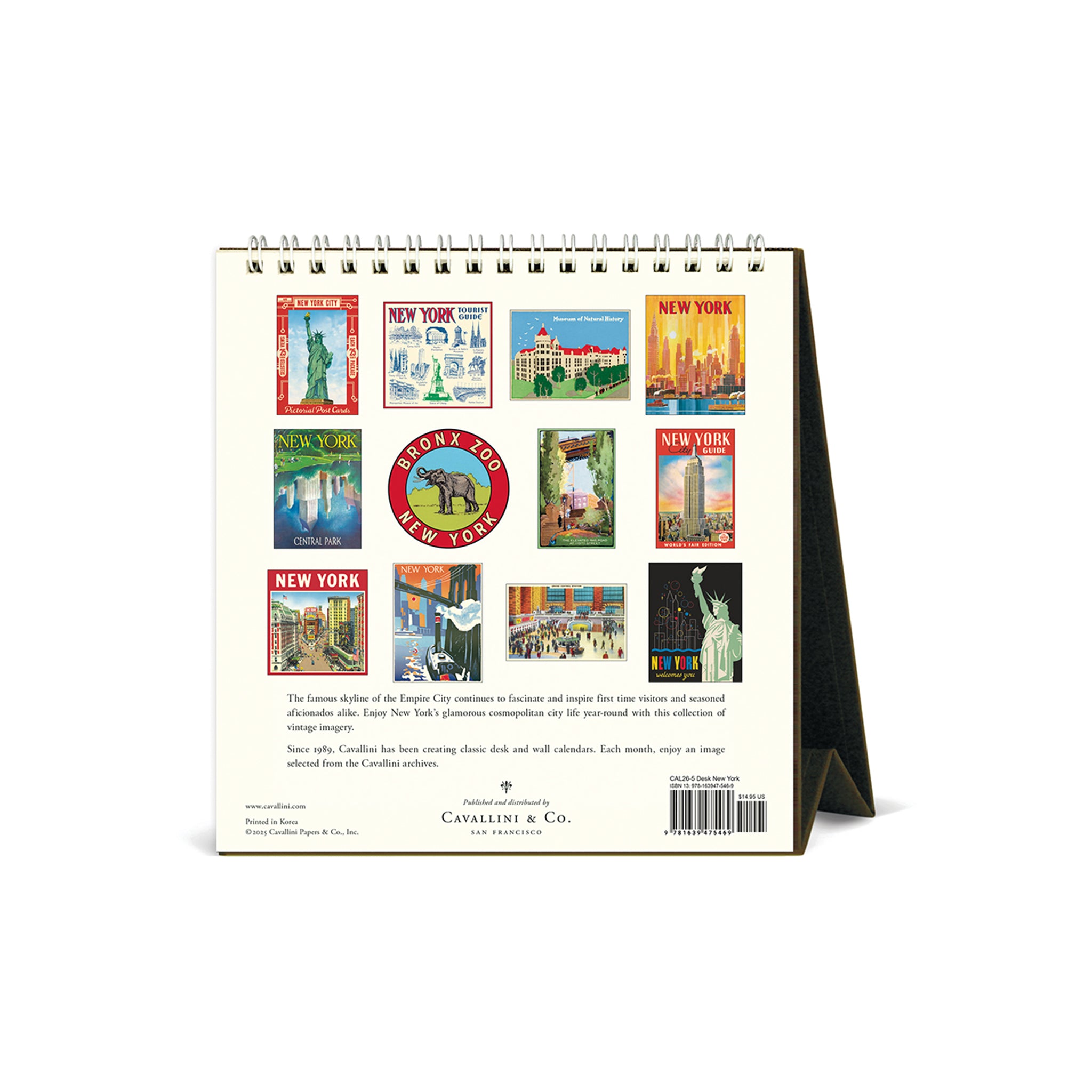 New York, New York! Bold images will keep you inspired with this adorable desk calendar. A perfect small size for any crowded workspace! Featuring archived images of New York posters, this spiral desk calendar pops up to sit neatly or fold flat. Calendar measures 6.5 x 6.5 inches