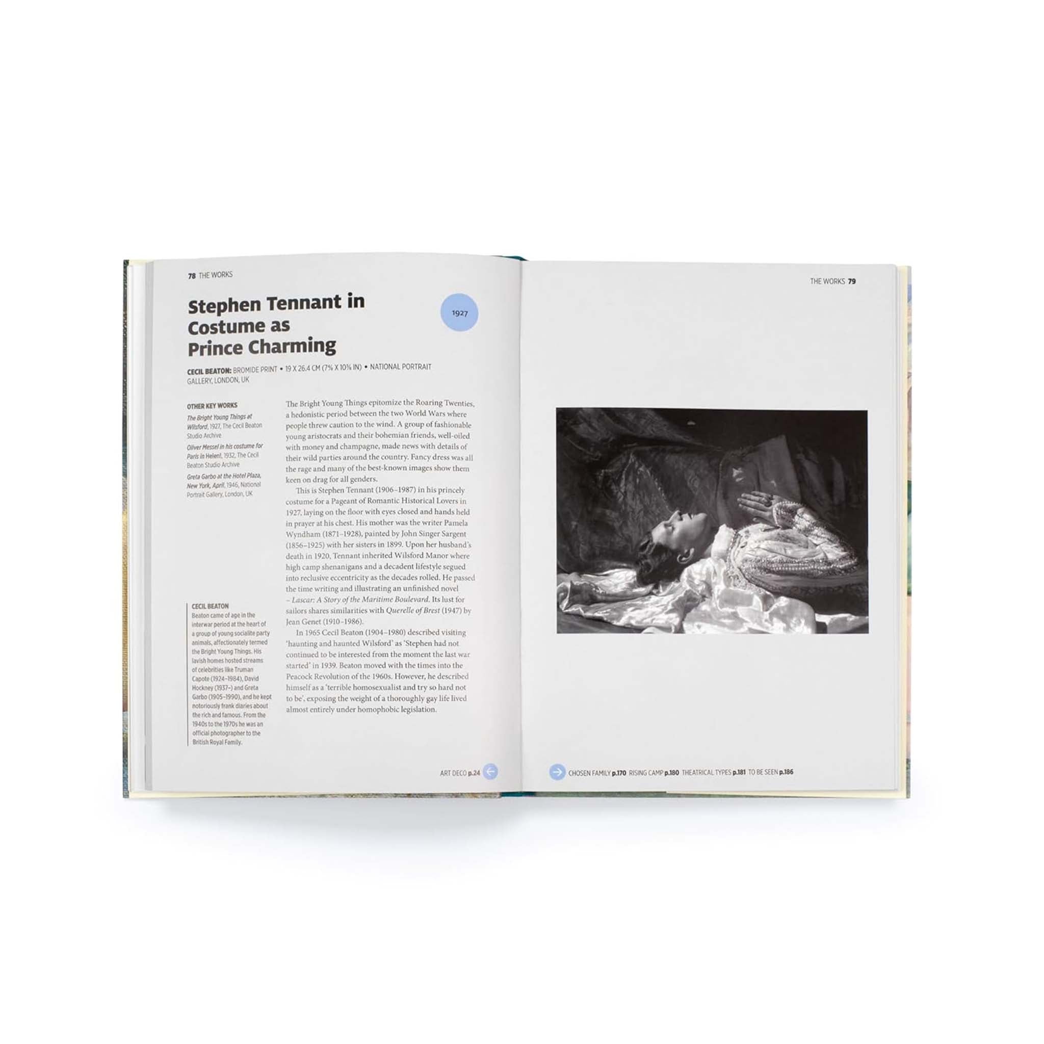 Simply constructed, the book explores over 40 key works and artists, from across the world and throughout art history, and links them to the most important movements, themes and breakthroughs. An eclectic range of art is featured, including Aubrey Beardsley's The Peacock Skirt, Frida Kahlo's Self-portrait with Cropped Hair, Cecil Beaton's Stephen Tennant in Costume as Prince Charming and Tamara de Lempicka's Autoportrait.