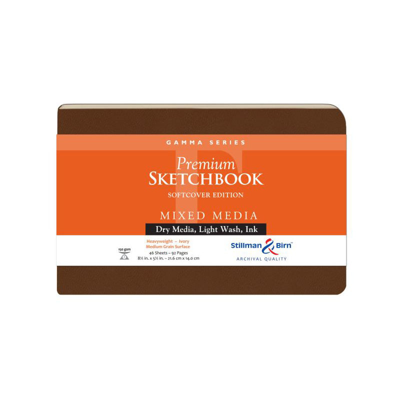 Amp up your sketching game with this flexible softcover sketchbook! This landscape format sketchbook has ivory-colored, heavyweight, medium-grain paper that is suitable for all dry media and works well with multiple types of washes.