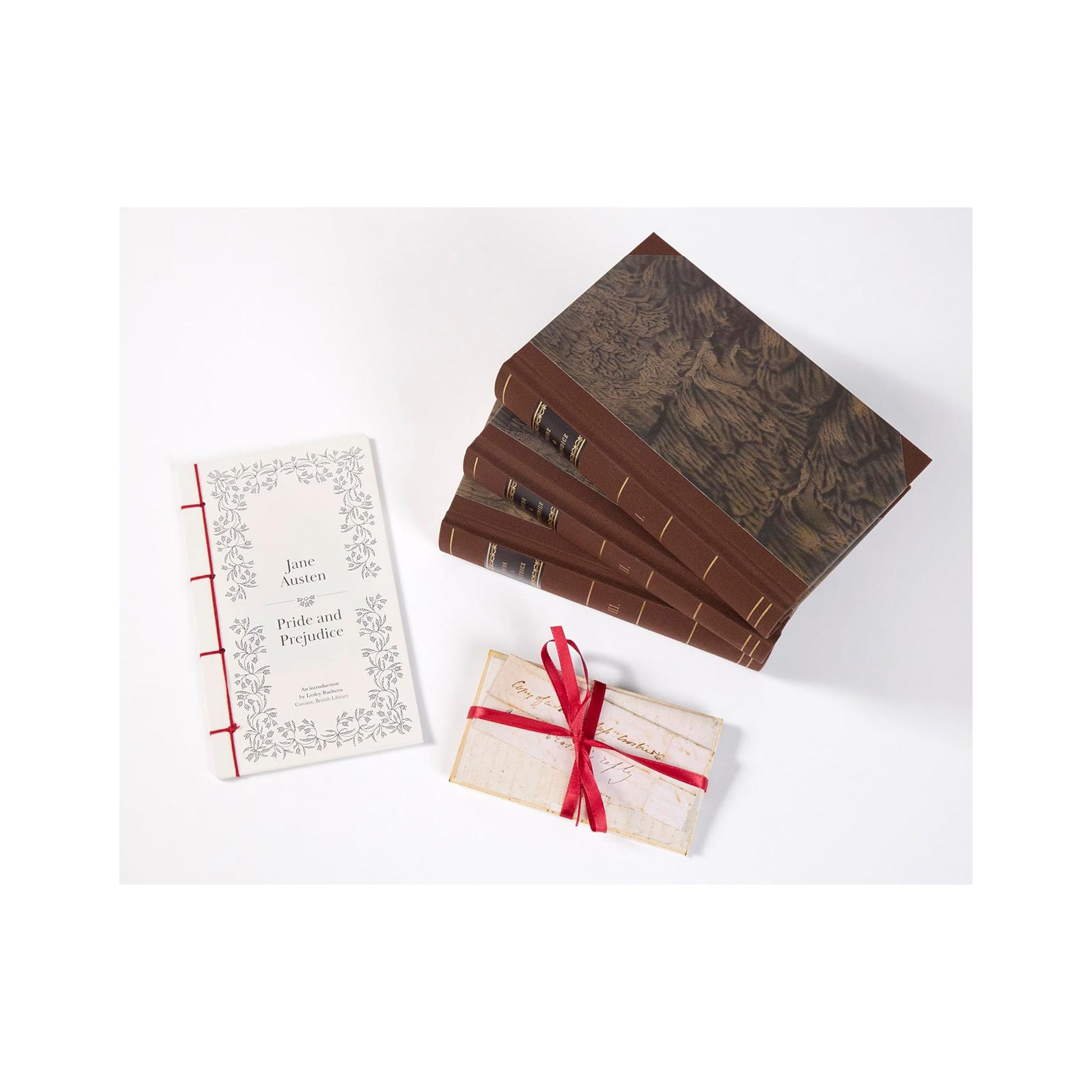 Published in association with The British Library on the 250th anniversary of Austen’s birth, this beautiful and authoritative package showcases the first edition as it was originally published in 1813 by T. Egerton in London; designed to be the clearest and finest expression of the art of bookmaking at the time of its first publication in the early nineteenth century. Presented in a distinctive clamshell case, each volume features marbled paper, deckled edges, and other decorative flourishes.