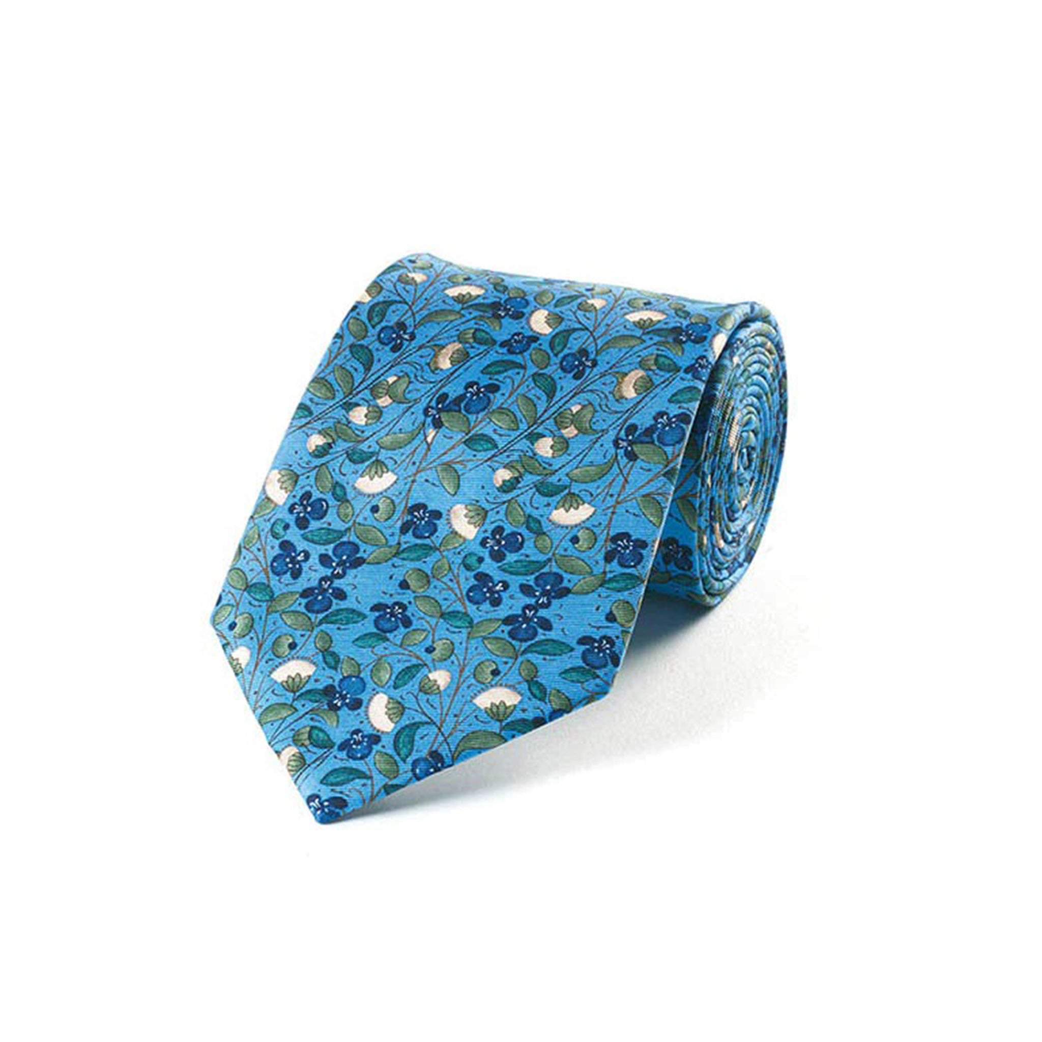 This elegant blue floral silk tie features a design from a 14th century French medieval Lady's Book of Hours, housed in the Canterbury Cathedral Library in Kent, England.