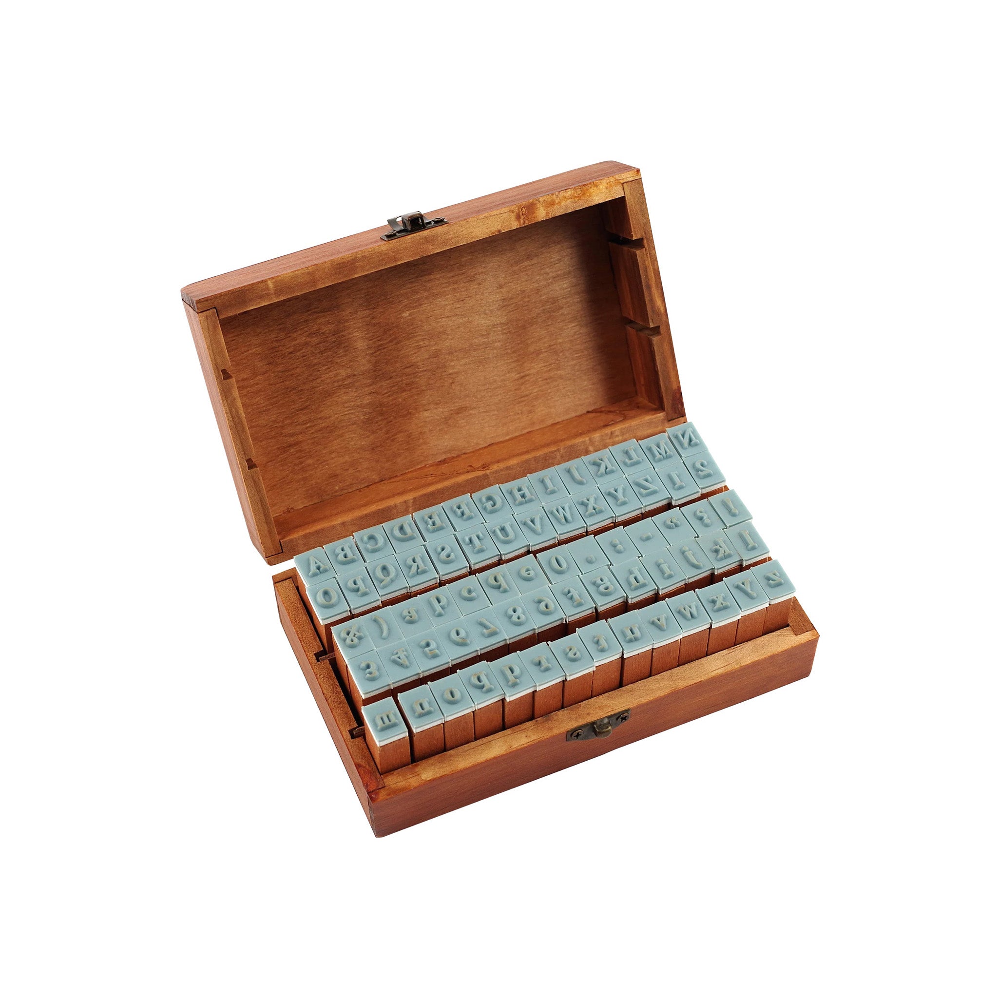This rustic wooden box with metal clasp comes with 52 stamps of the alphabet in upper and lower case letters, 8 punctuation stamps, and 10 numbers stamps. The whimsical vintage type is reminiscent of letterpress and the rubber-tipped wooden stamps are perfect for paper crafts. Use them for card making, scrapbooking, dot journaling, labeling, crafting, art journaling, and so much more!