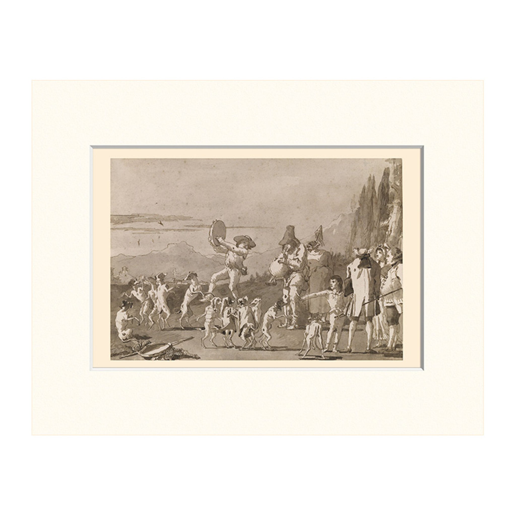 This special matted print depicts a fun scene with dogs dancing for lively musicians with bystanders observing the fray by Domenico Tiepolo! A fun addition to your decor, this print is sure to bring a smile to anyone’s face.