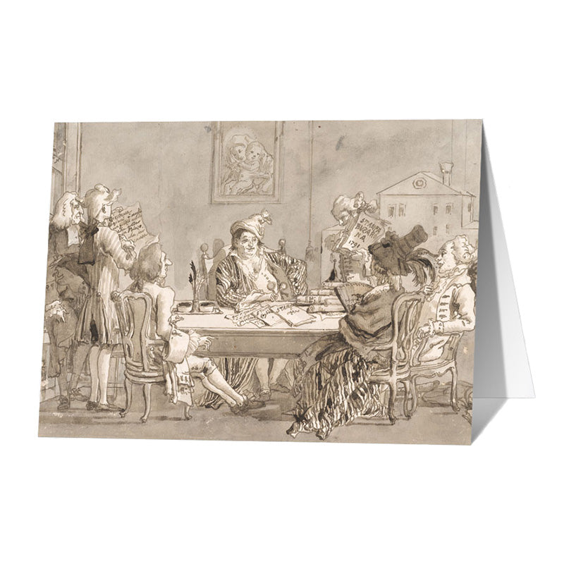 This notecard depicts an entertaining scene in a lawyers office by Domenico Tiepolo (1727-1804). Drop a note to your favorite lawyer, this notecard is sure to be a conversation starter!