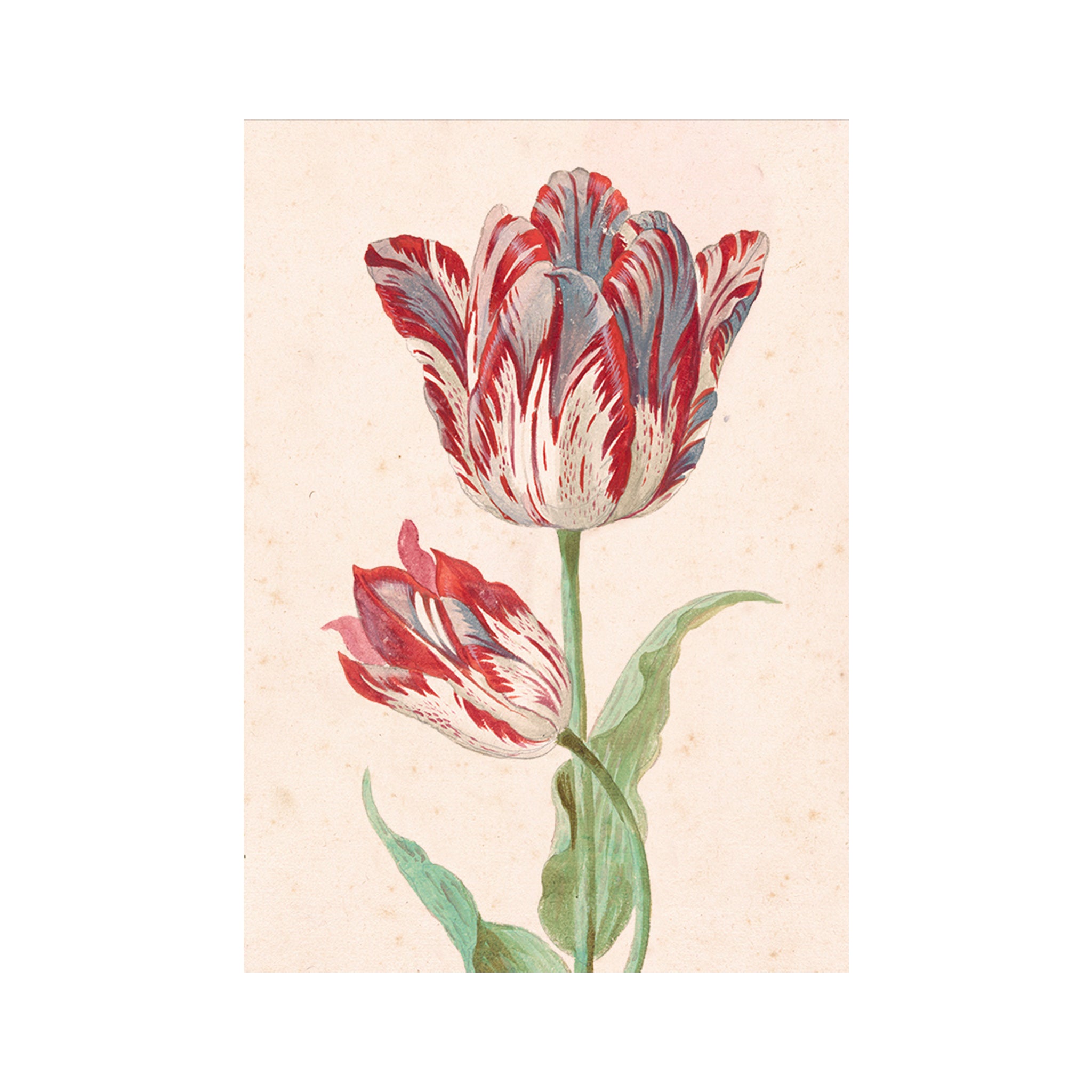 Painter and draftsman Jacob Marrel became one of the foremost practitioners of the genre, with a particular penchant for red and white tulips. This finely drawn and colored sheet exemplifies Marrel’s work, which was praised in this time and this carefully reproduced in this boxed set of eight notecards and envelopes.