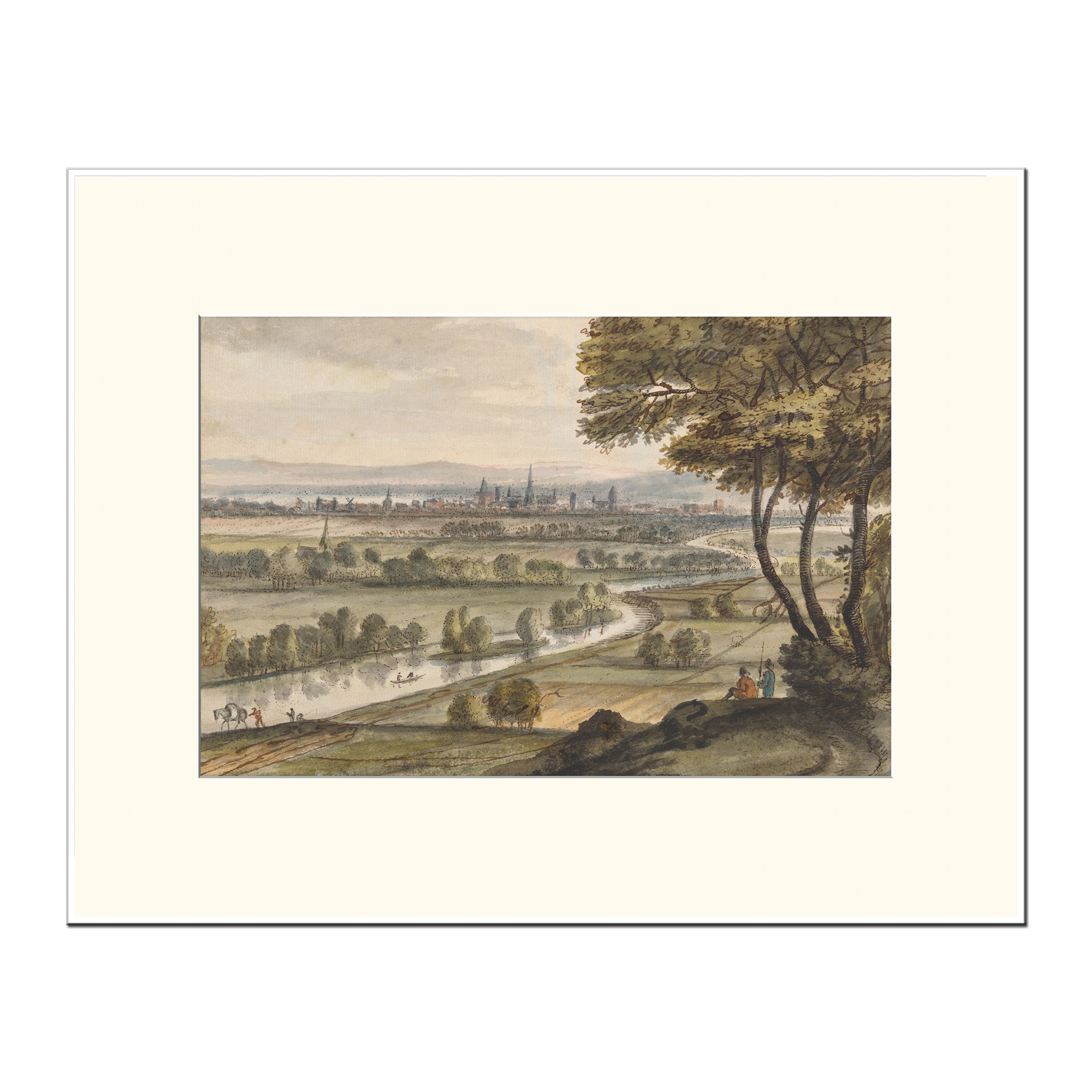The striking River Landscape with a View of Oxford in the Distance by Jan Siberechts (1627-1703) completes this set. Siberechts, a native of Antwerp, came to England in 1672 at the behest of the 2nd Duke of Buckingham and remained there for the rest of his life, almost single-handedly creating the genre of the country house view, works that depicted and celebrated the stately country seats of the aristocracy. It is a well-known fact that almost all the significant early topographical views of British towns, whether drawn, painted, or engraved, were the work of foreign artists.