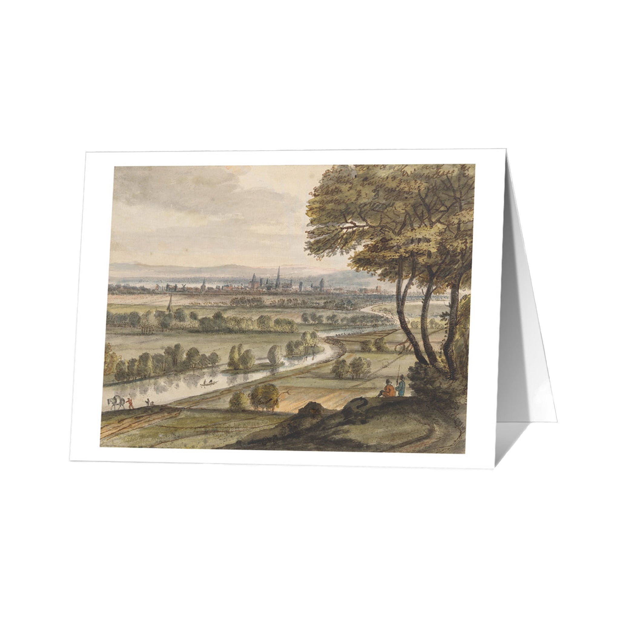 The striking River Landscape with a View of Oxford in the Distance by Jan Siberechts (1627-1703) completes this set. Siberechts, a native of Antwerp, came to England in 1672 at the behest of the 2nd Duke of Buckingham and remained there for the rest of his life, almost single-handedly creating the genre of the country house view, works that depicted and celebrated the stately country seats of the aristocracy. It is a well-known fact that almost all the significant early topographical views of British towns, whether drawn, painted, or engraved, were the work of foreign artists.