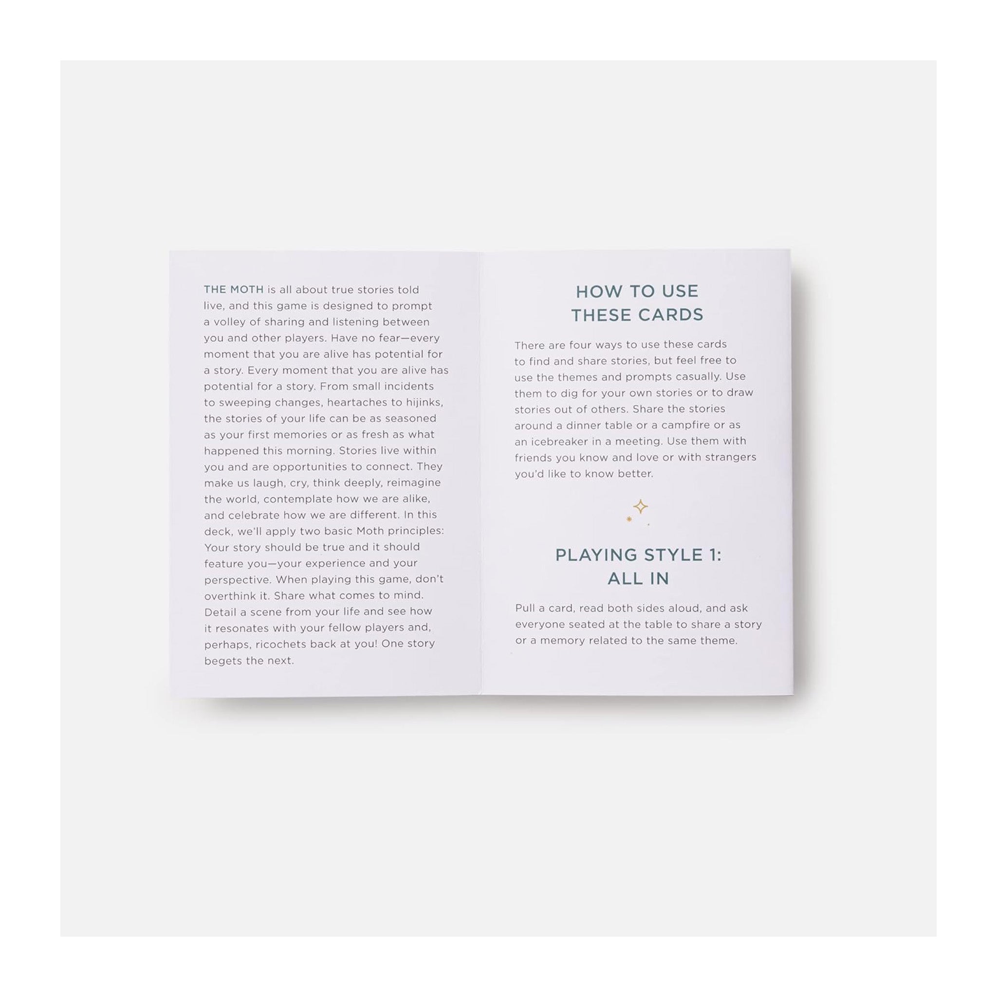 From the storytelling experts at The Moth, an interactive card deck that uses true stories to encourage lively conversations, spark creativity, and improve your public speaking abilities.