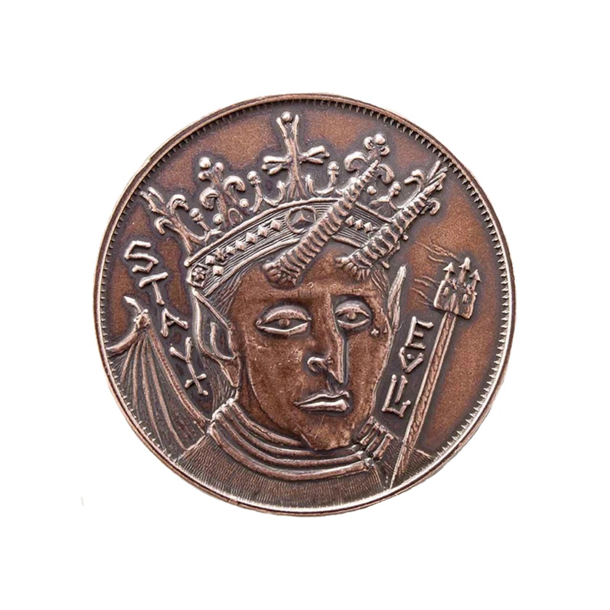 Hand-struck of solid copper, these coins are made in the USA with antique machinery and traditional coining techniques and treated to look as if it has been handled and circulated. No two coins are alike!