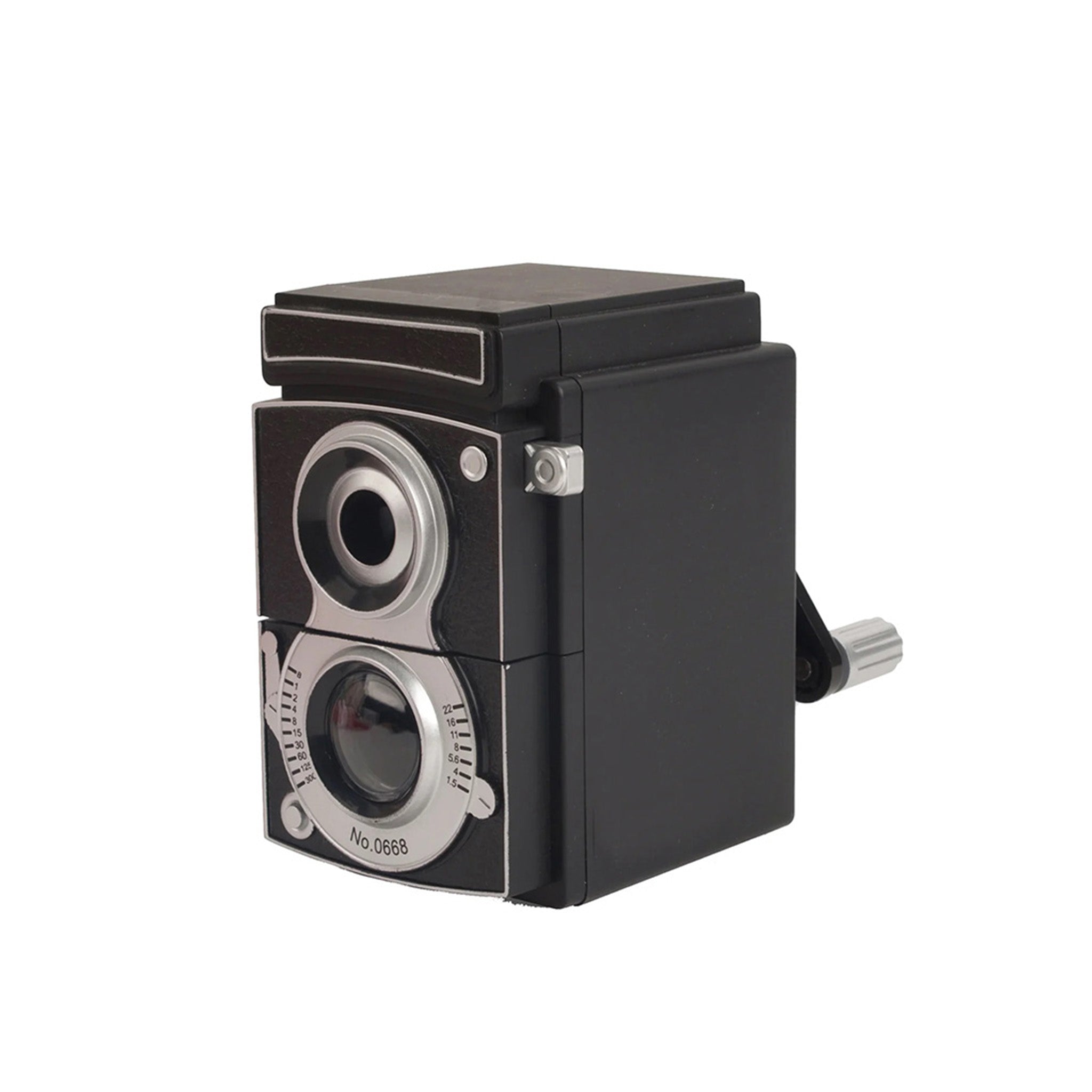 This elegant camera pencil sharpener is designed to look like a vintage camera from years gone by. It has an adjustable sharpness knob and a pull out shavings tray. A great gift for the camera lover you know, and looks great in any decor.