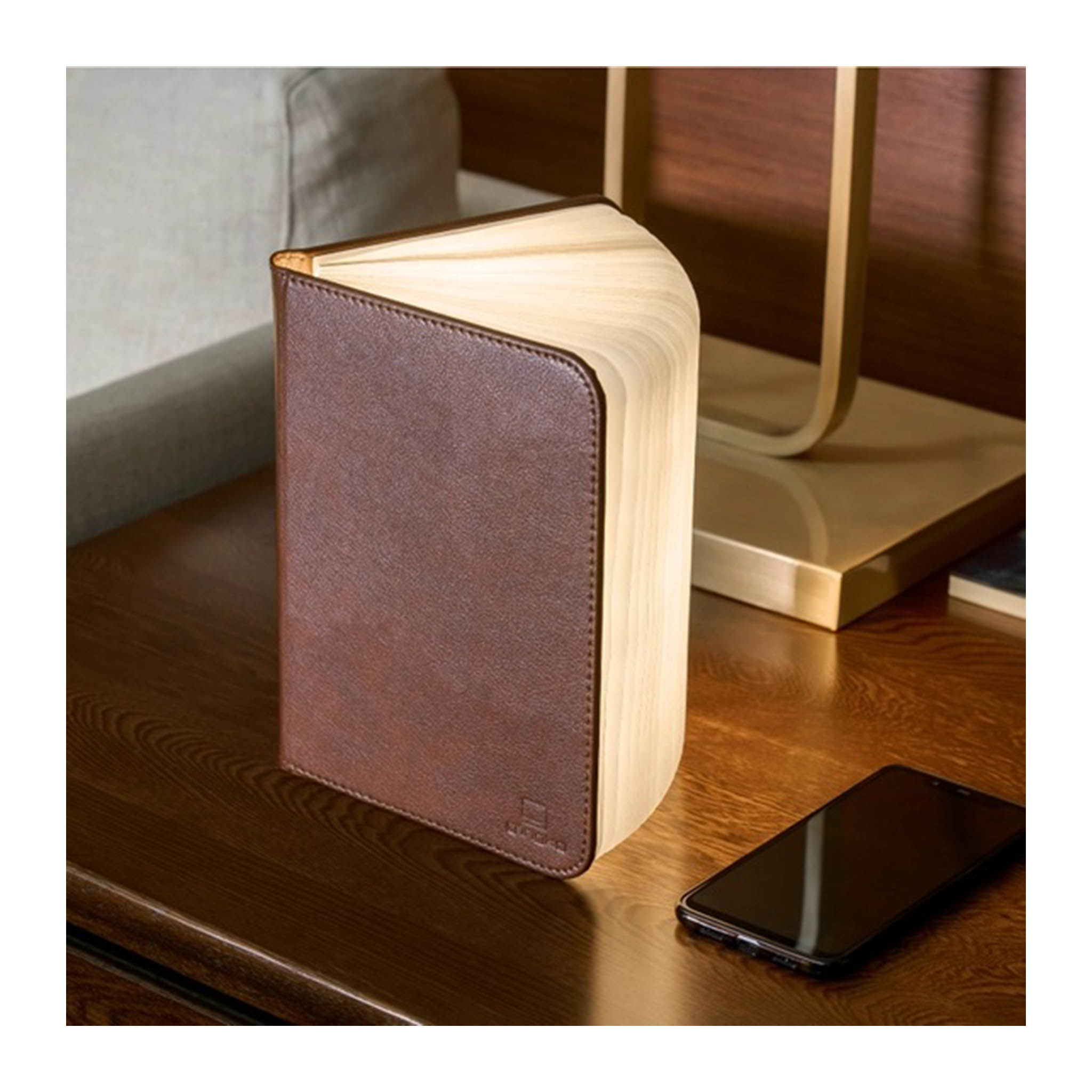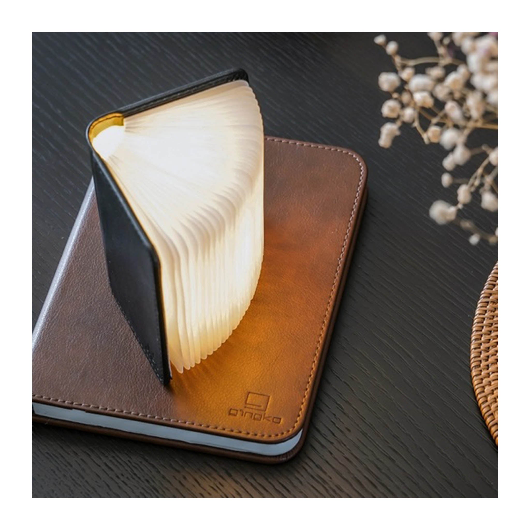 The fiber leather smart book light collection is definitely a great additional piece of art to any home; when closed, this smart Book Light masquerades a natural looking brown or black leather notebook, but when opened it transforms into a sculptural light emitting a wonderful ambient warm soft LED light through the pages.