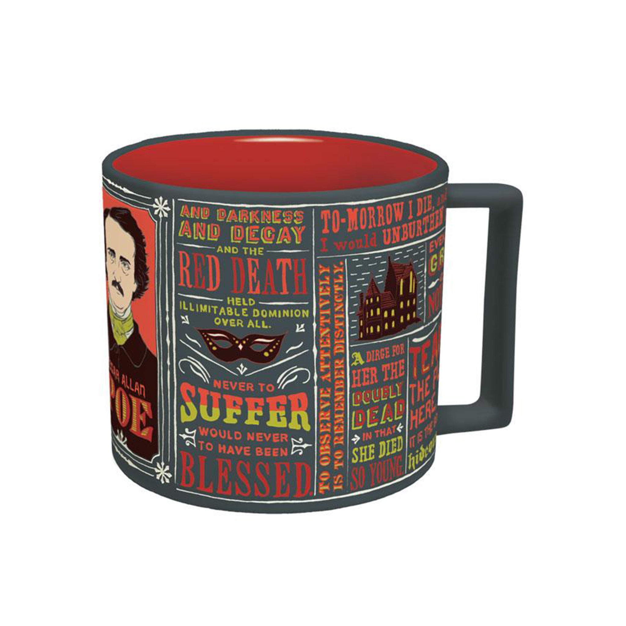 The Edgar Allan Poe mug is for tea-drinkers, coffee-drinkers and any fellow that fancies himself a tea-pot. This mug features Poe's likeness, as well as images and quotes from his iconic poems and stories. Makes any beverage mysterious!