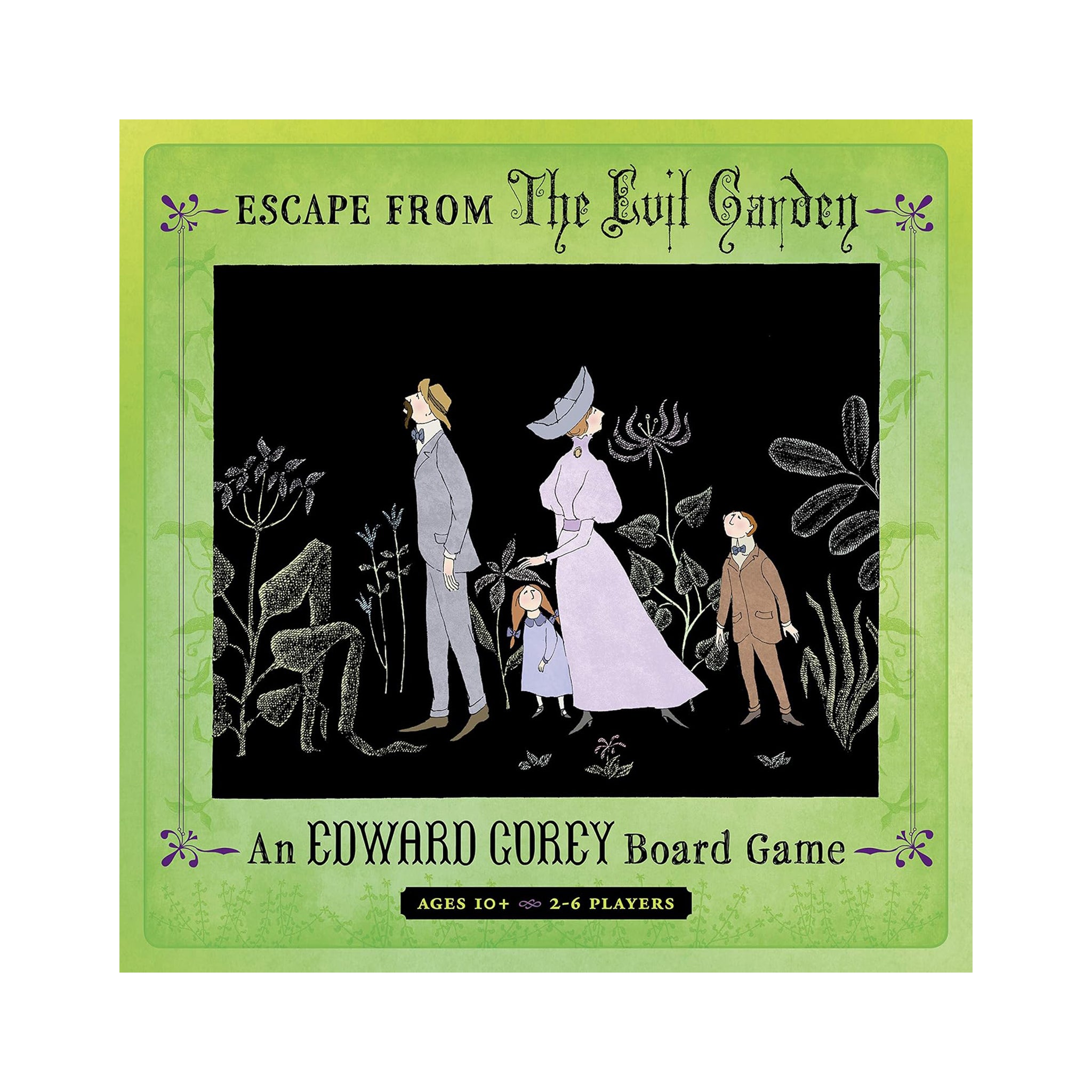 For 2–6 players, ages 10 and up, Escape from The Evil Garden gives players the chance to experience Edward Gorey’s signature drawings and iconic storytelling in a brand new way. With a double-sided board and two different game modes, Escape from The Evil Garden provides unique gameplay time and time again.