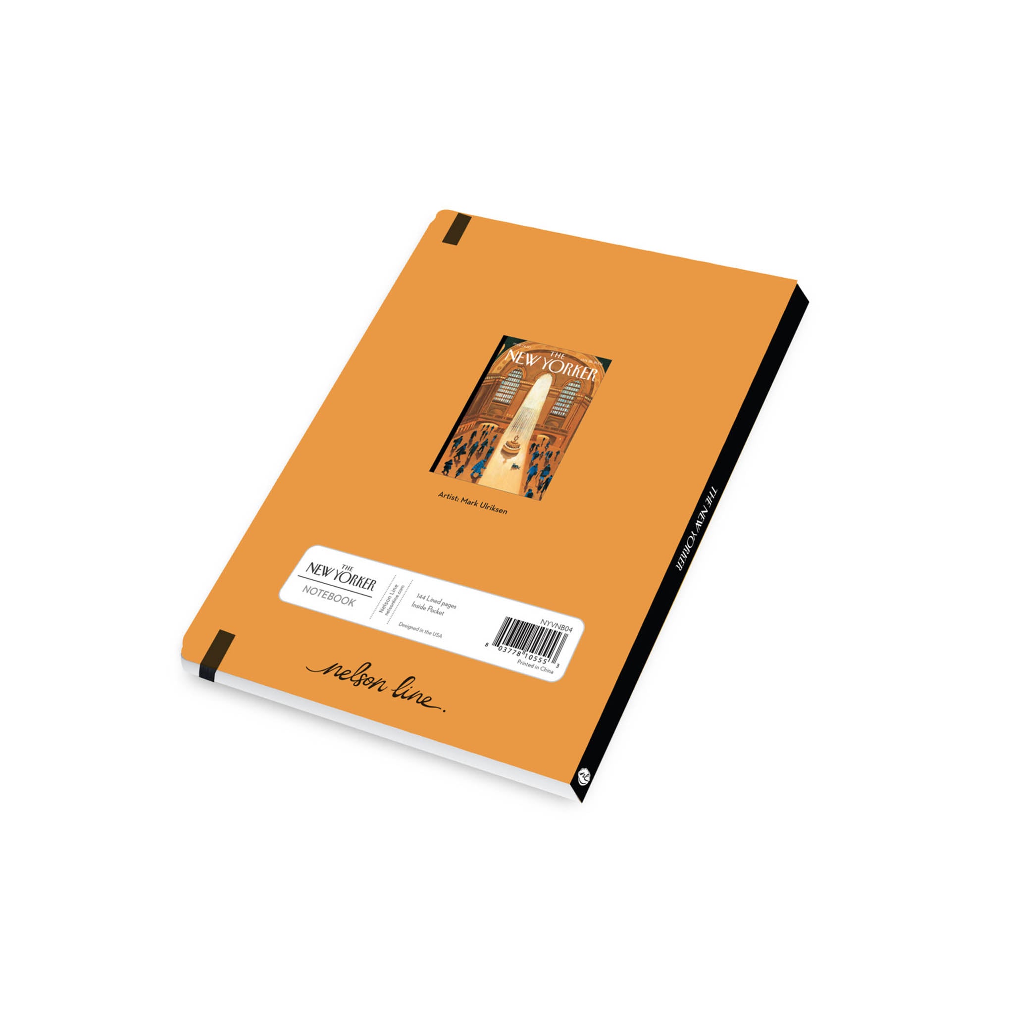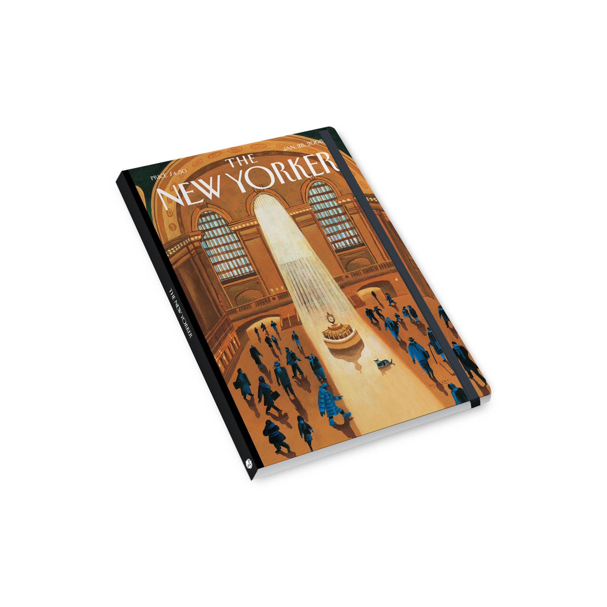 This handy hardcover notebook featuring a New Yorker cover image on the front exudes sophistication and artistic flair. The cover showcases a high-quality print of Grand Central Station by New Yorker artist Mark Ulriksen. The notebook itself is sturdy, with a smooth matte finish, rounded corners, and a durable lay-flat spine. Inside, crisp, cream-colored lines pages offer a refined writing experience. Comes with an elastic closure and back pocket for added functionality, making it perfect for journaling, sketching, or note-taking with a touch of classic New Yorker style.