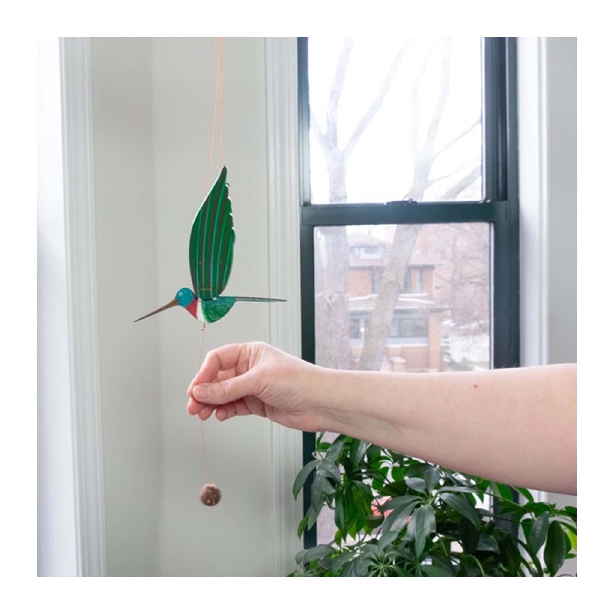 The Hummingbird Flying Mobile creates a bright spot of joy in any room, porch, or sunroom and is available in a traditional Ruby-Throated Hummingbird or a more tropical color pink hummingbird.
