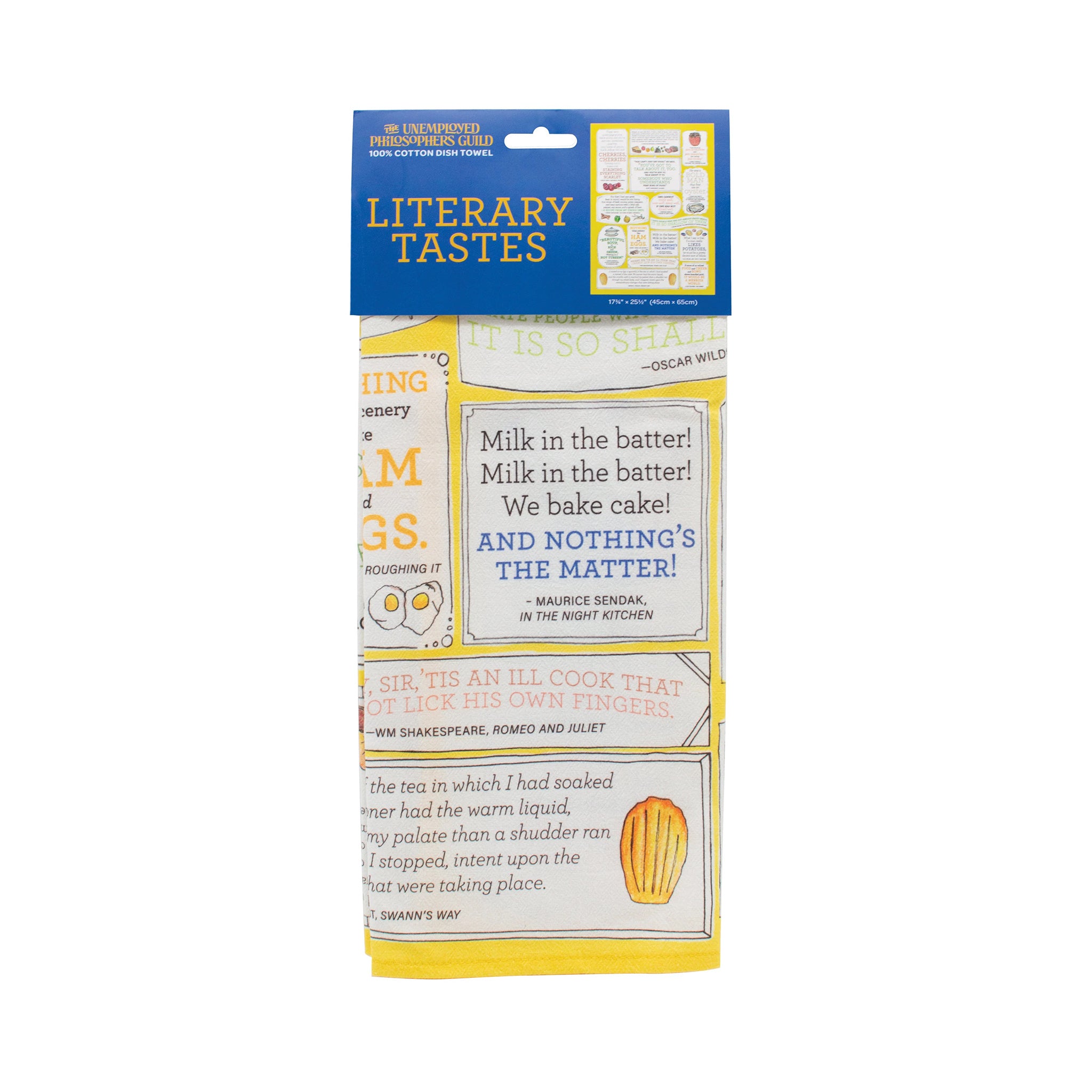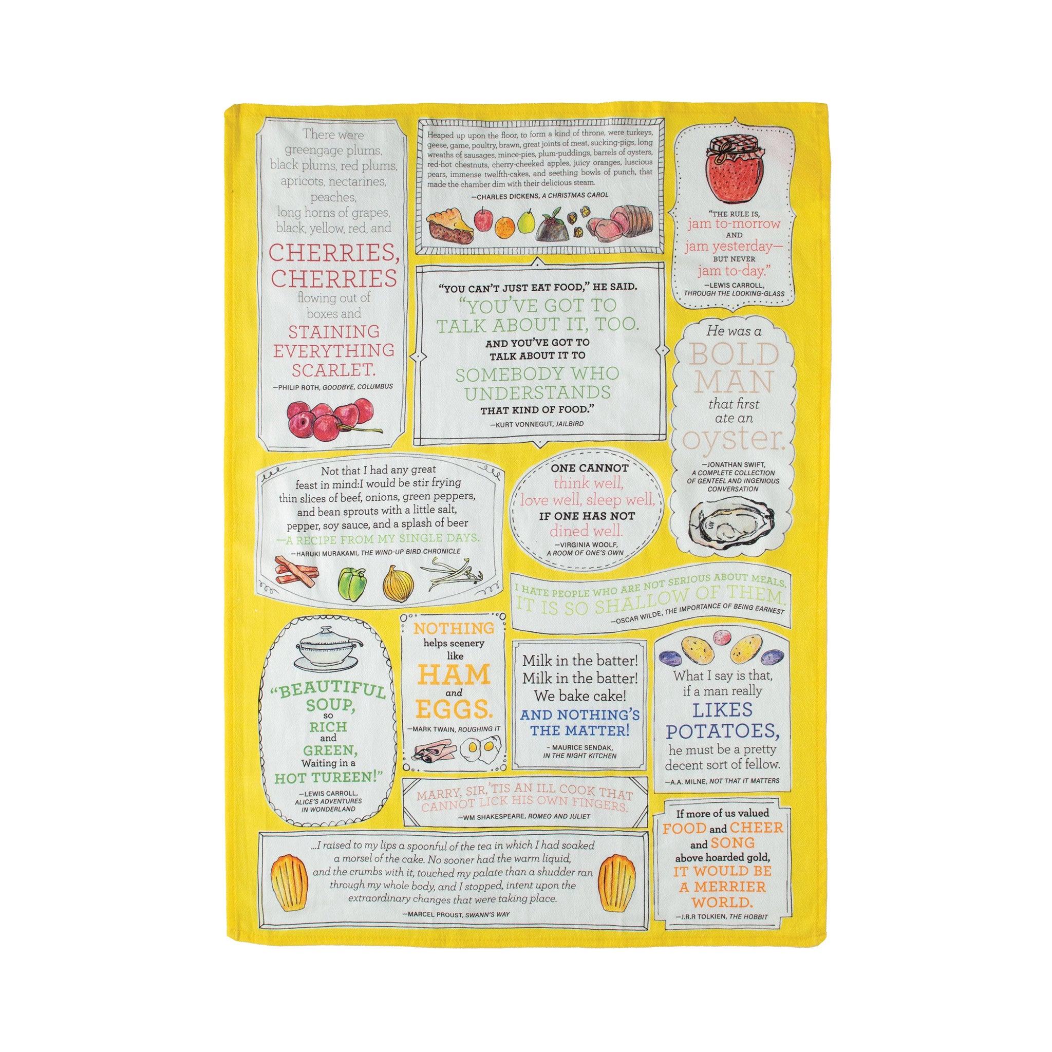 The enticing Literary Tastes Tea Towel serves up 18 savory quotes about food to enjoy between writers.