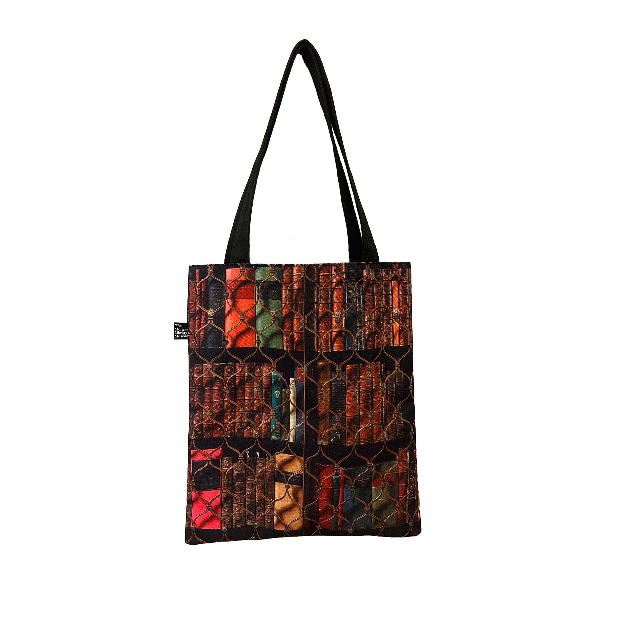Gather your books and tote them around town in this handsome bookshelf tote, exclusive to the Morgan Library & Museum.