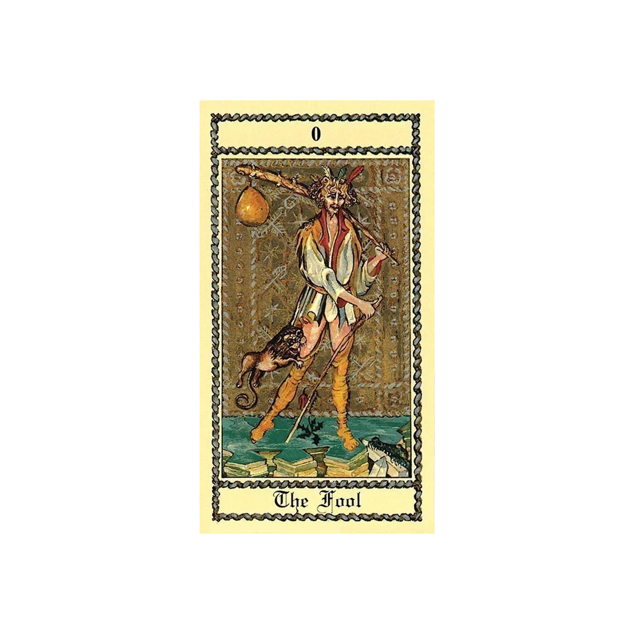 Italian artist Luigi Scapini’s lavish paintings recreate 15th century Italy in this gold-accented tarot deck. The Major Arcana and court cards have gold backgrounds in the manner of fifteenth-century European decks. Both the Major and Minor Arcana include full scenes. In the Minors, symmetrical arrangements of the suit symbols provide composition around which the scenes are arranged.