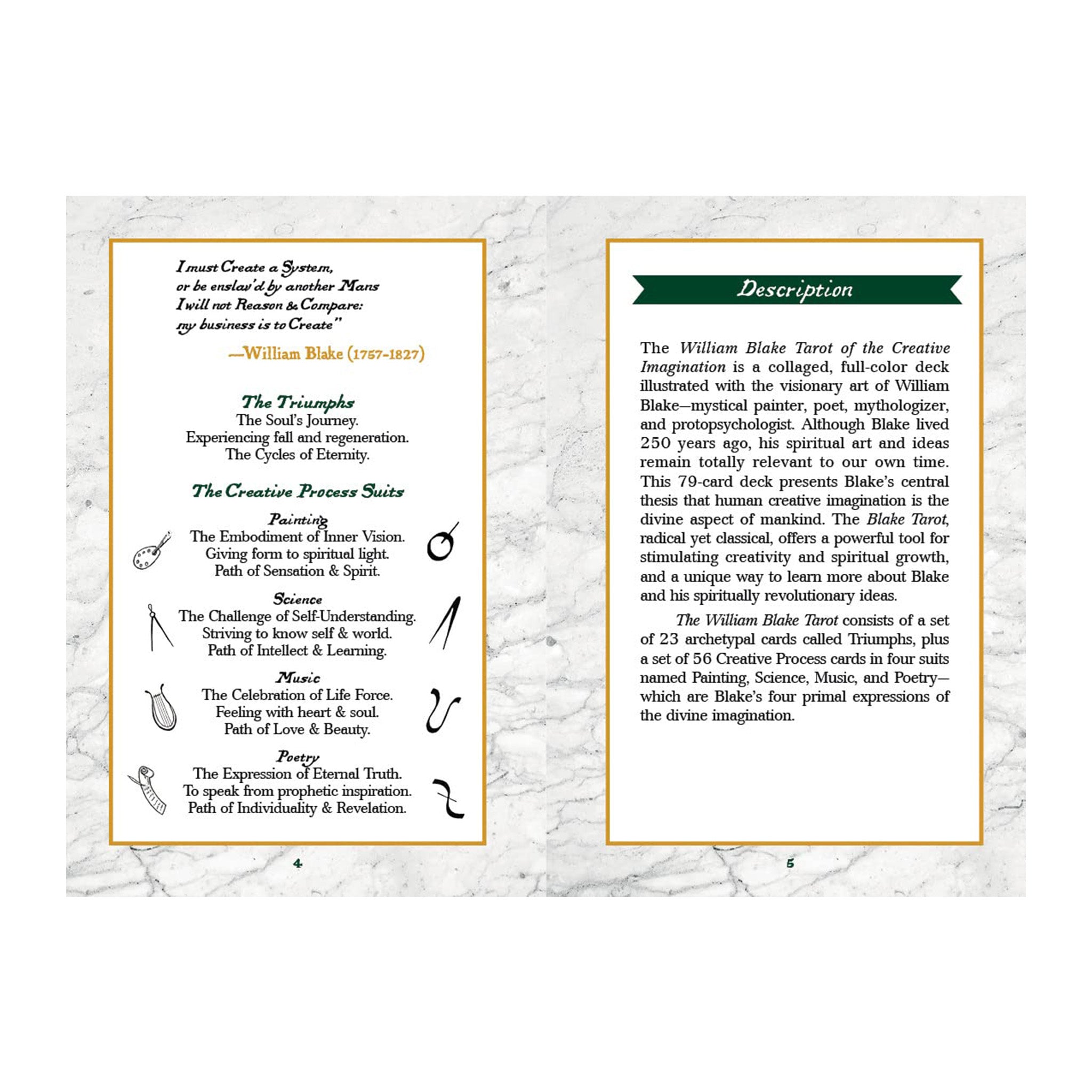 - Unlike textbooks and critical studies, this Tarot deck presents Blake's astounding ideas and images in a manner that is approachable and entertaining.