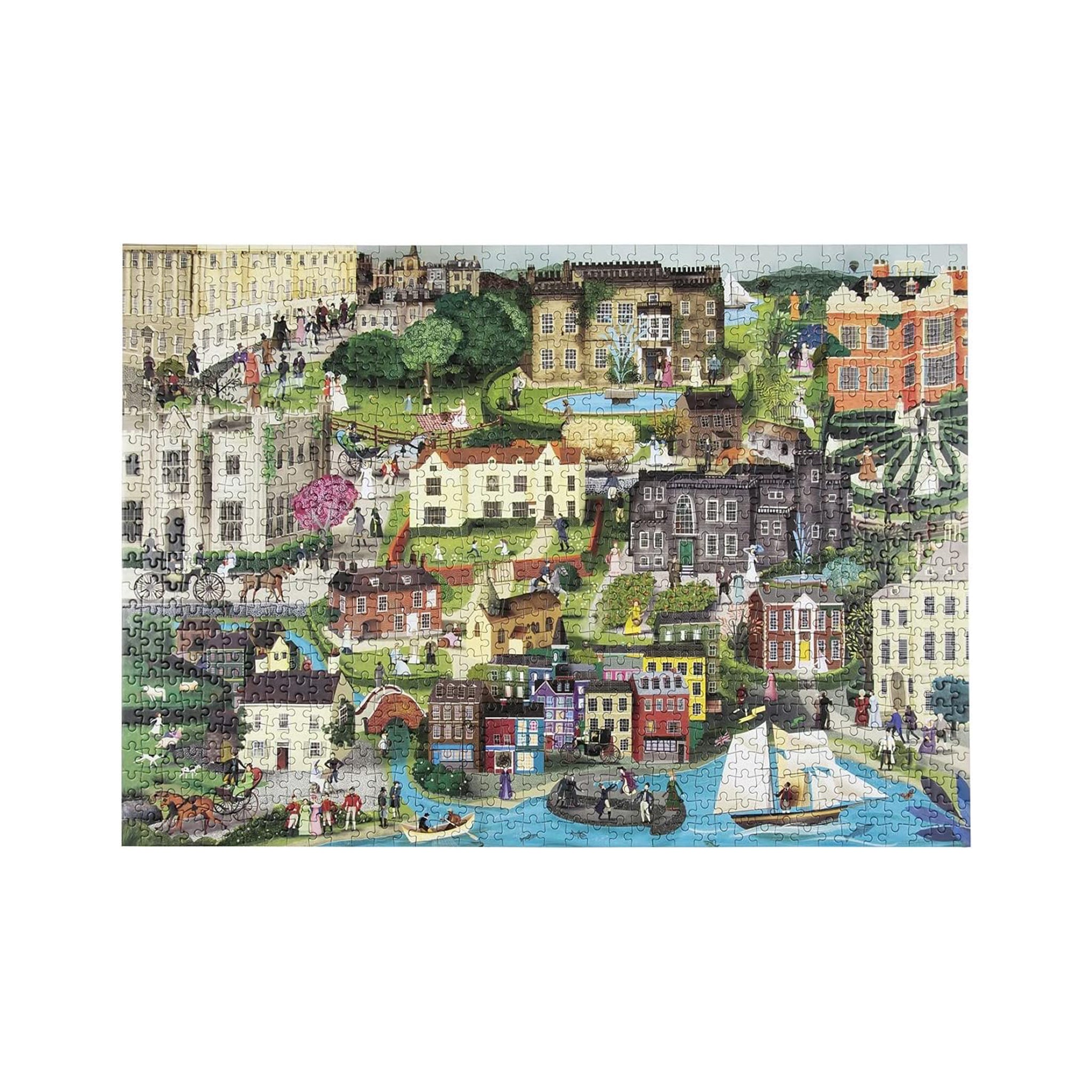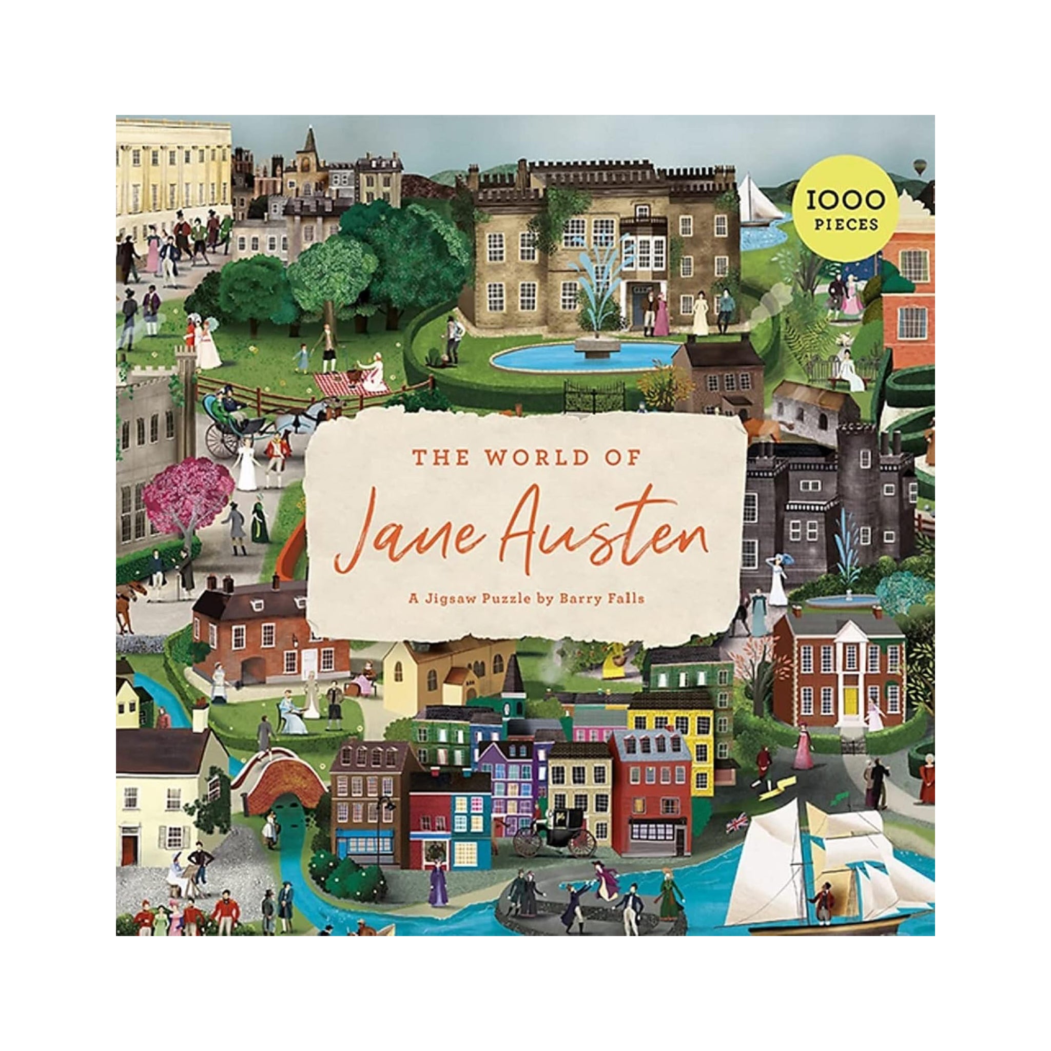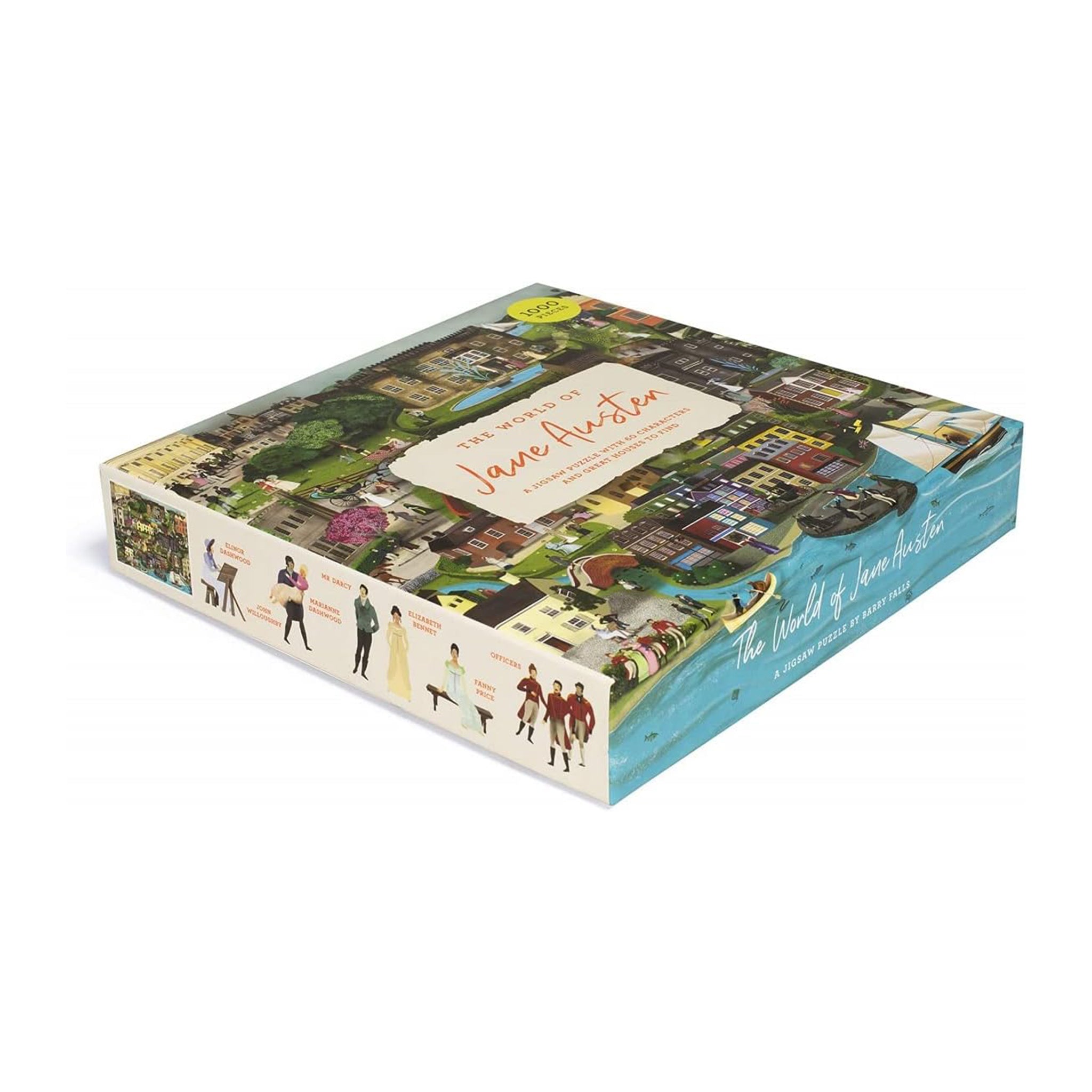The World of Jane Austen is a new 1000 piece puzzle, featuring a wide cast of Jane Austen's contemporaries and characters. Hidden amongst the rolling hills of Derbyshire, Hampshire, Lyme Regis and more, you can see Mr. Darcy at home in Pemberley, or find Mr. Knightly enjoying a stroll around the garden, plus many more familiar characters hidden alongside Austen's peers.