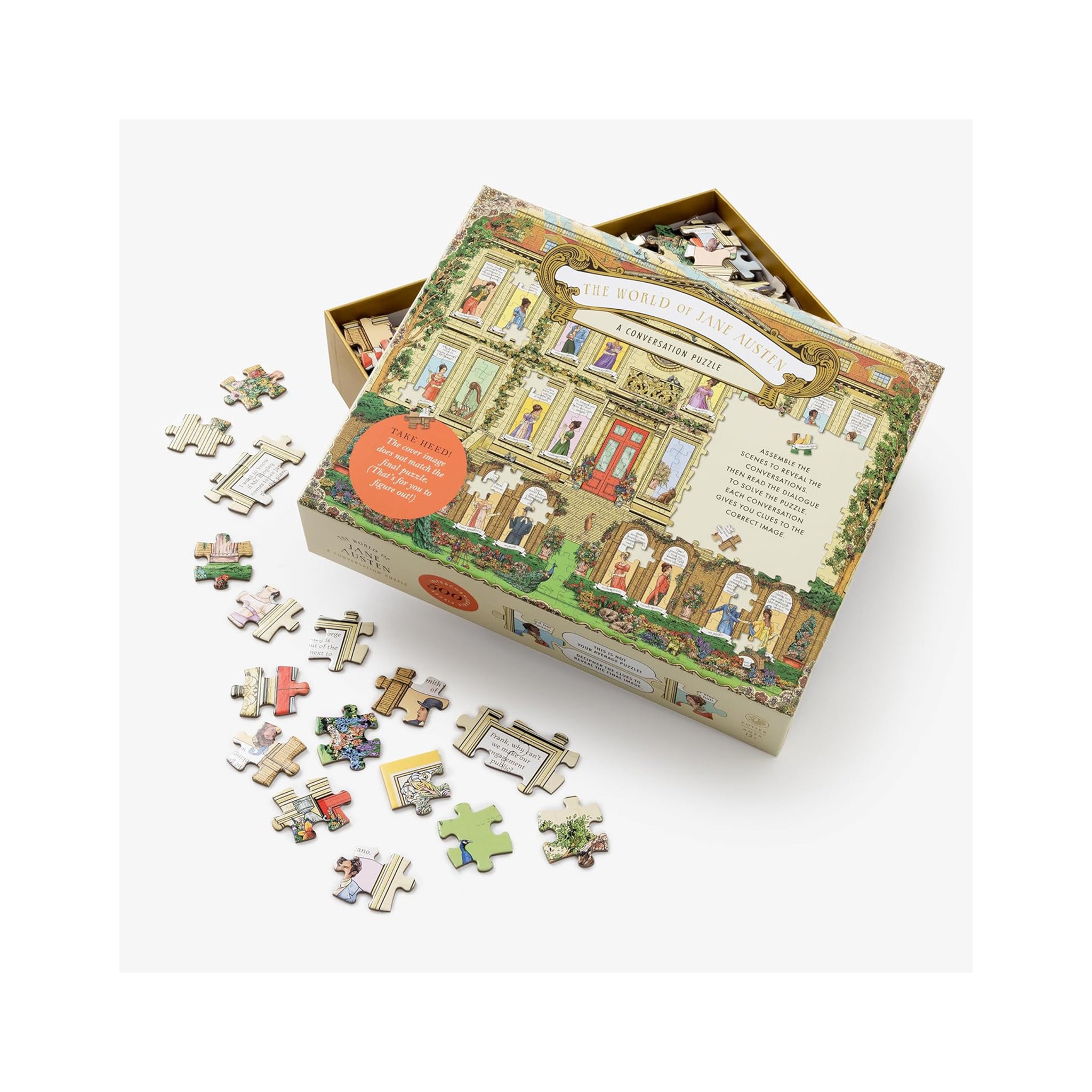This 500-piecce jigsaw puzzle is a unique experience for puzzle lovers. The pieces can be arranged in any order, but you have to read the conversations between characters from Jane Austen's beloved novels in order to understand how the puzzle goes together.