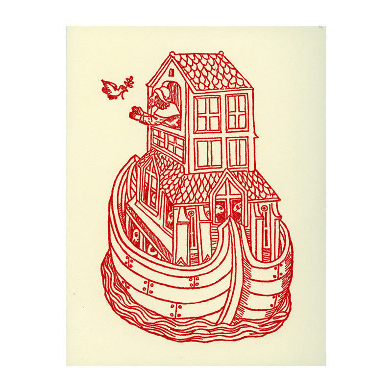 The perfect card to send for a fresh start! These red embossed notecards are printed on a cream-colored card stock. Based on a woodcut from La Mer des Histoires from 1488 in the Morgan Library and Museum collection.