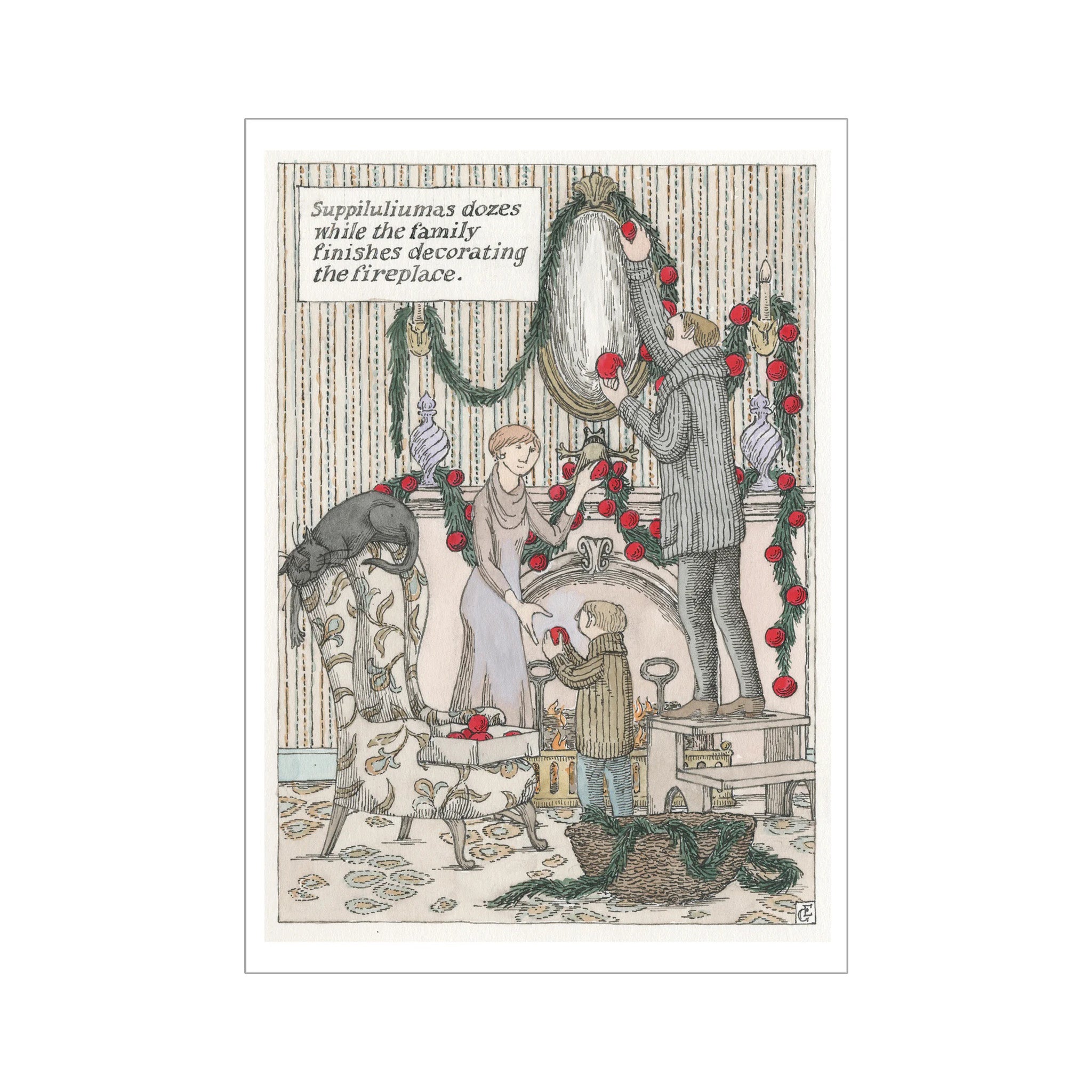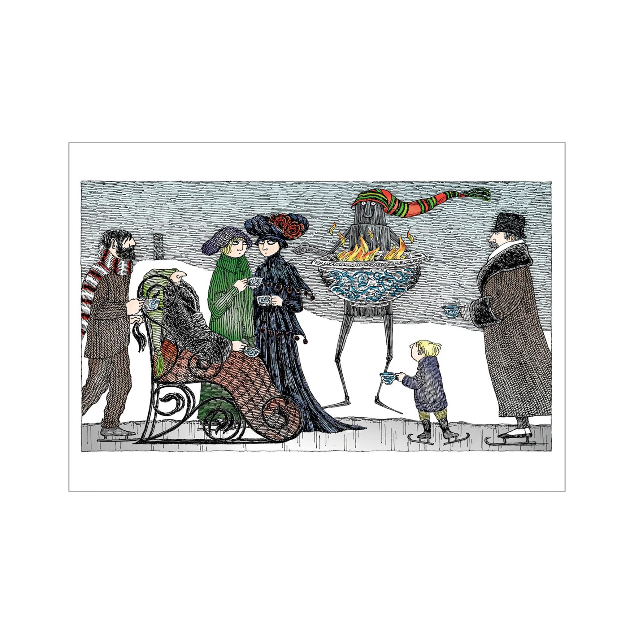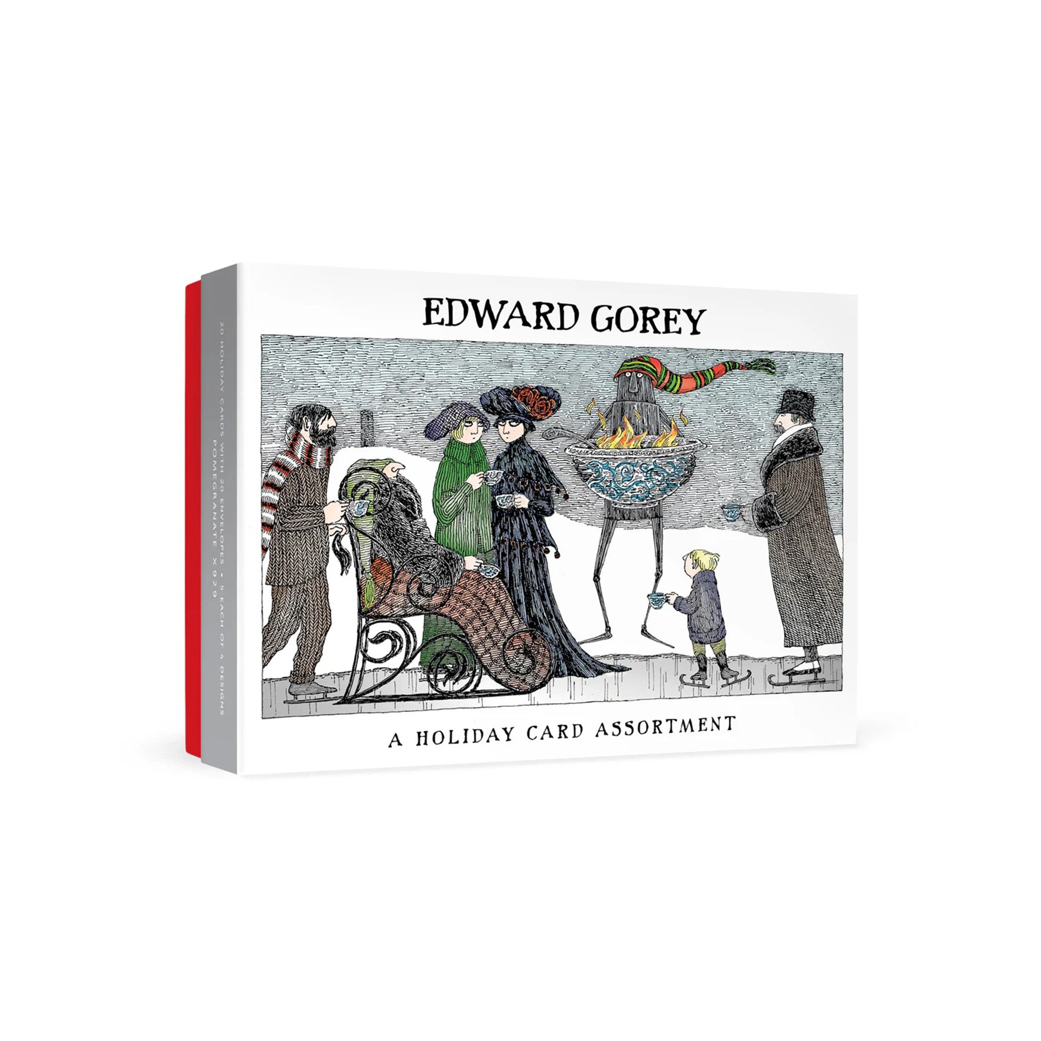’Tis the season to be Gorey. . . . This is Edward Gorey at his festive best. Join him as you sip the flaming punch, sample a cookie, dispose of the fruitcake, and decorate the fireplace. This boxed set of holiday cards contains five each of four designs.