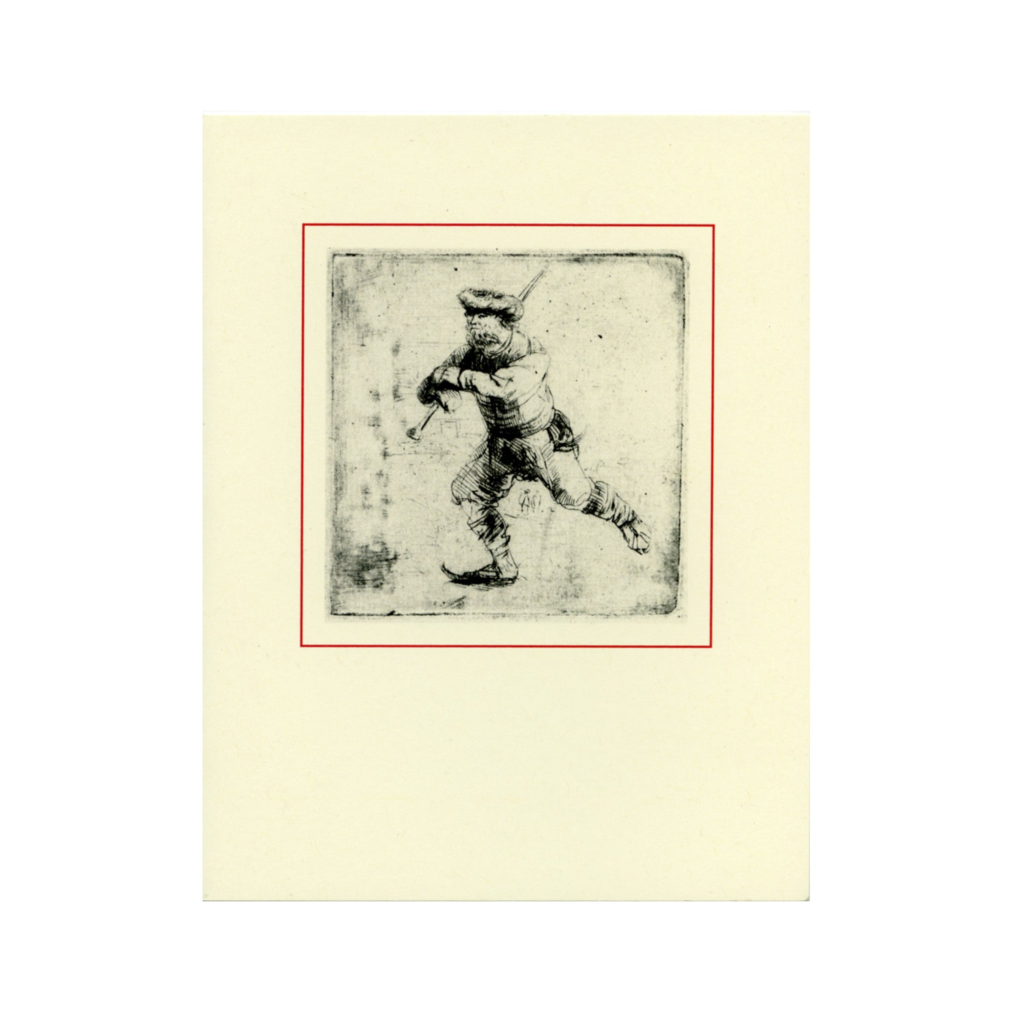 Send greetings of the winter season with these simple cards featuring a man ice skating by Rembrandt Harmenszoon van Rijn (1606-1699).