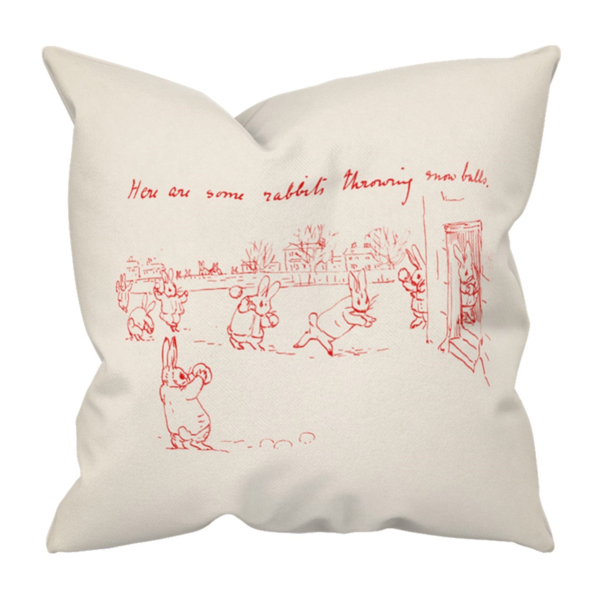 Beatrix Potter: Rabbits Throwing Snowballs Pillow