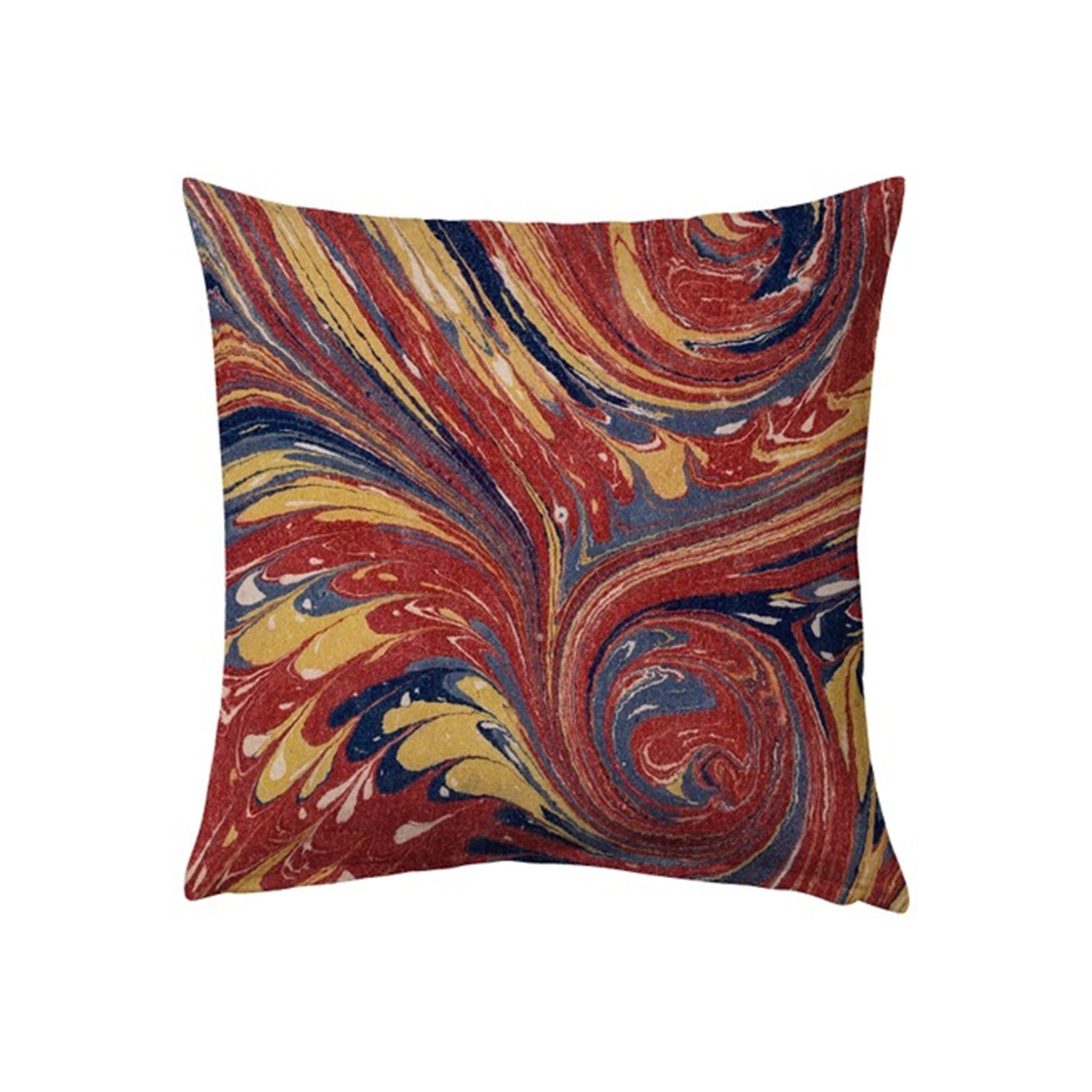 Experience the luxurious touch of this Red Marbled Velvet Cushion. Measuring 18 x18 inches, this pillow boasts a solid linen back that's as sturdy as it is elegant. It features a brass zipper, giving it a unique edge while maintaining a refined aesthetic. The knife edge detailing adds a sleek, modern touch to any space.