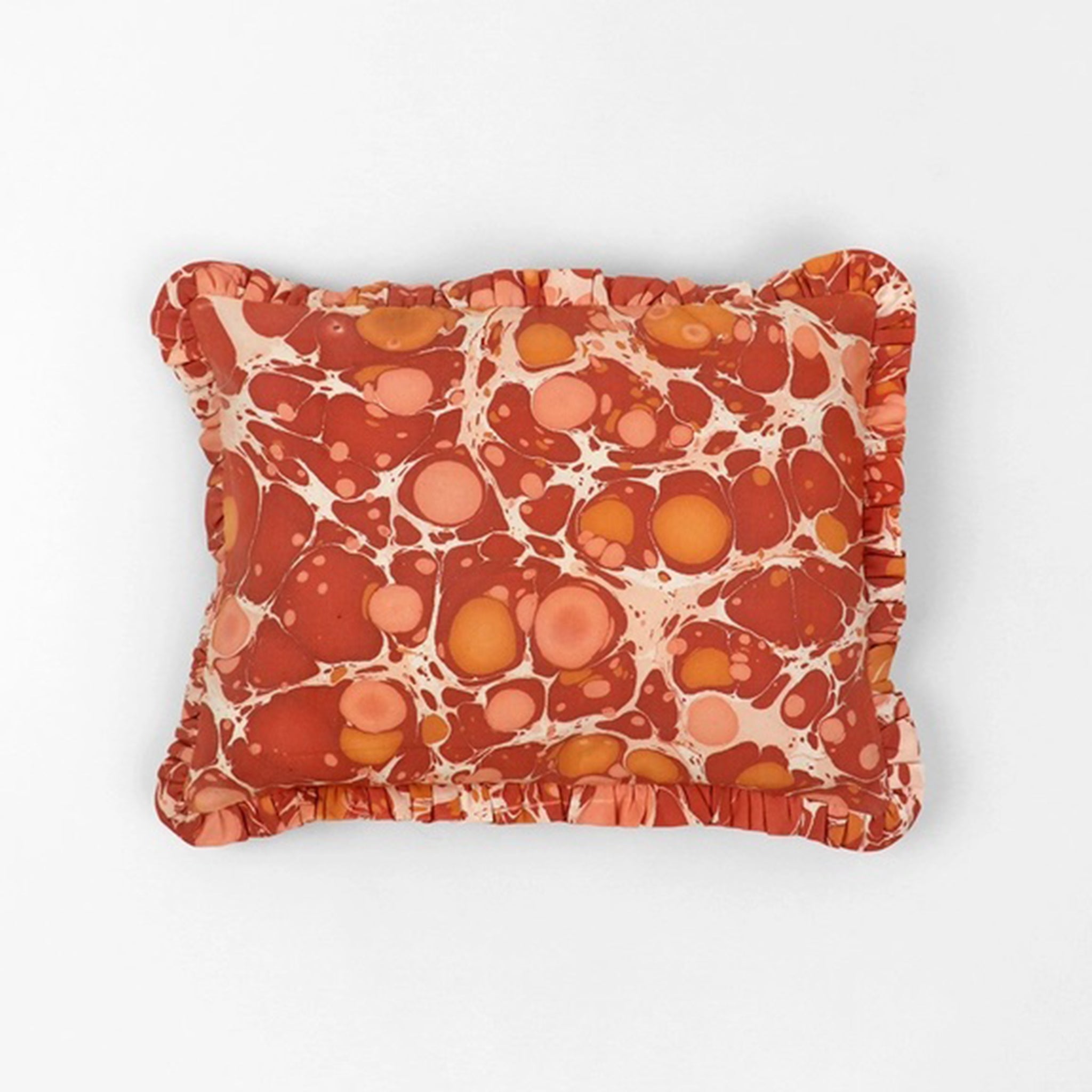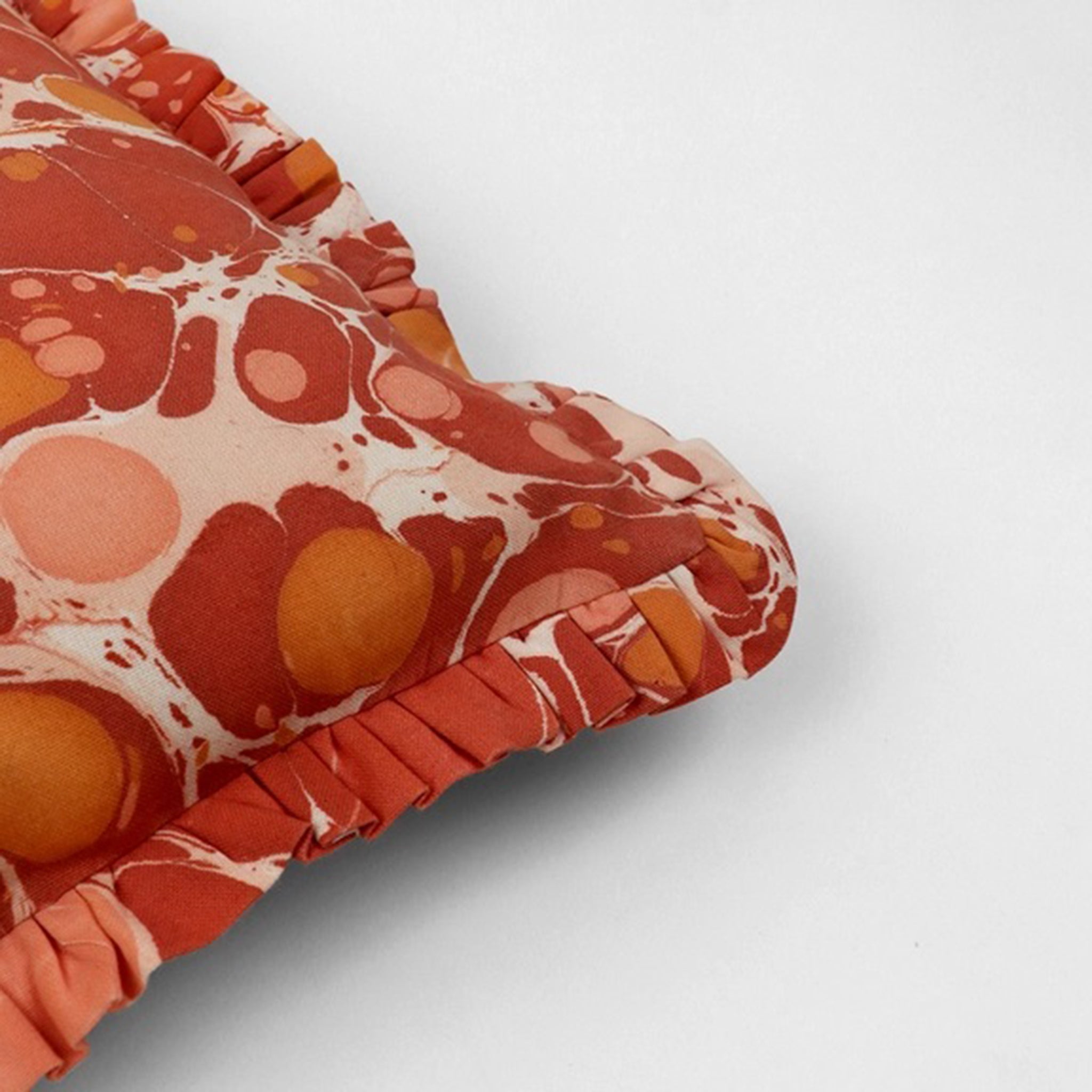 This hand-marbled cushion is inspired by patterns on water, sky and mountains. Made in small batches by master artisans in India, this pillow has a 100% cotton cover with a concealed zipper closure.