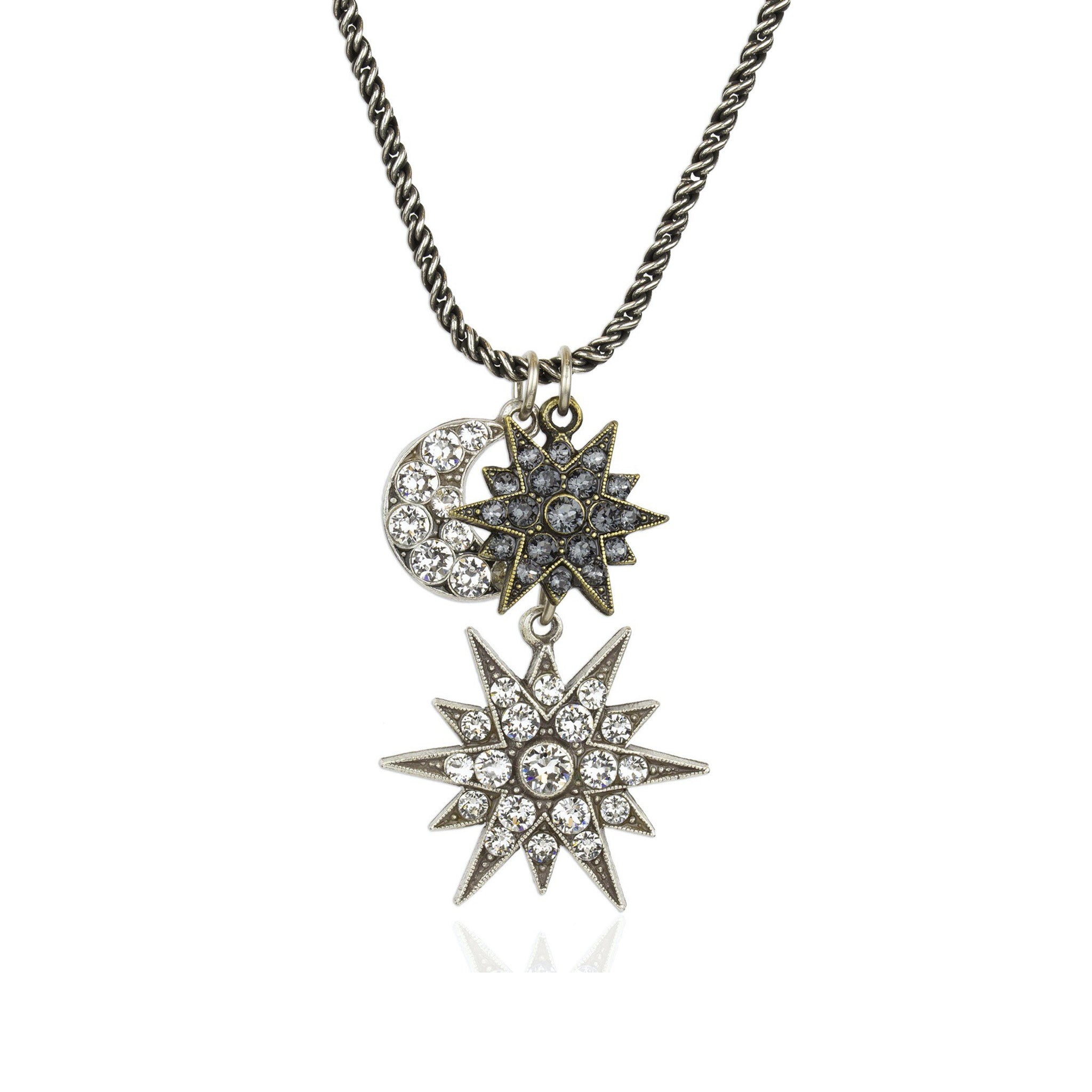 Feeling starry-eyed? The subtle charcoal gray crystals mixed with sparkling clear crystal charms makes this necklace a sure standout to any outfit.