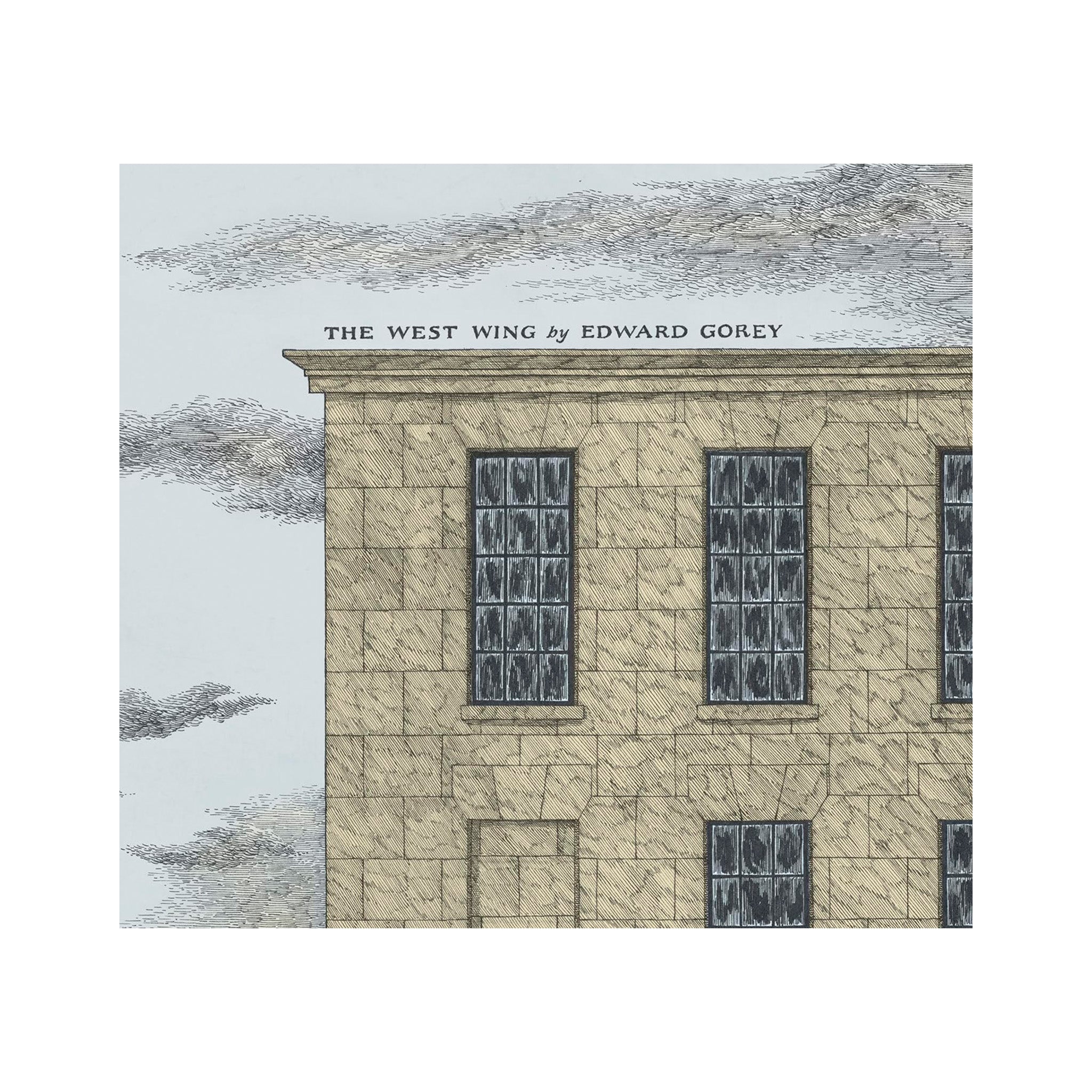 Originally published in 1963, The West Wing is one of Edward Gorey’s classic books. This wordless tale unfolds through 31 mysterious drawings that carry the viewer from room to room via long corridors. Peeling wallpaper hangs to the floor, a candle held by invisible hands casts light into the dark, and odd characters appear unbidden. The viewer wonders: What’s haunting this building? And who left that boulder on the table? First released as part of The Vinegar Works: Three Volumes of Moral Instruction (which included The Gashlycrumb Tinies and The Insect God) this book is undoubtedly a cautionary tale. Stop. Do not enter. Unless you dare to find out what’s happening in The West Wing.