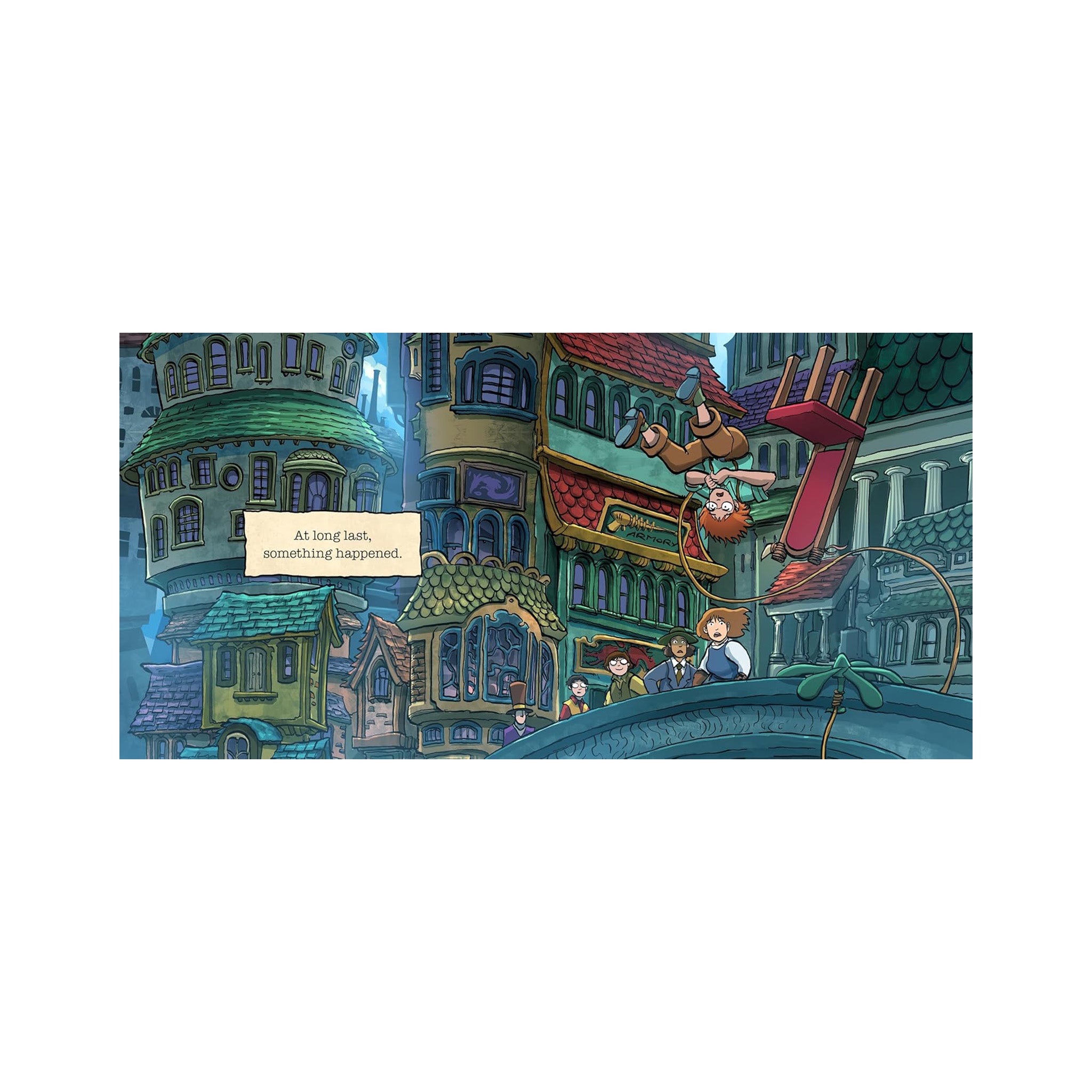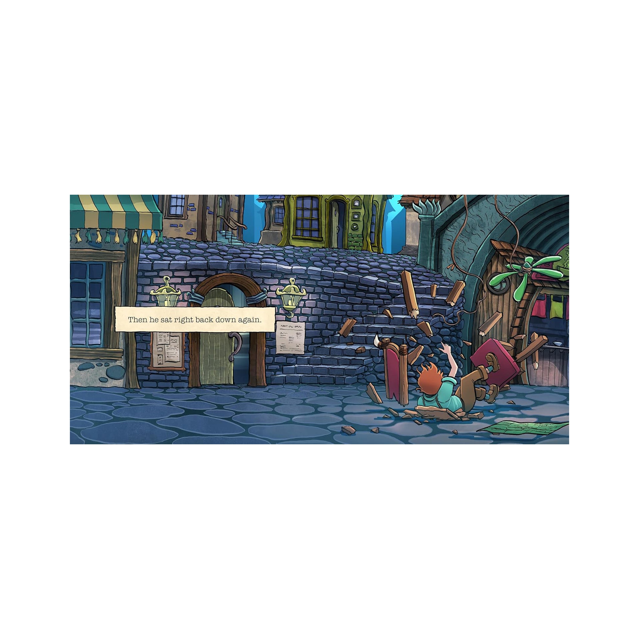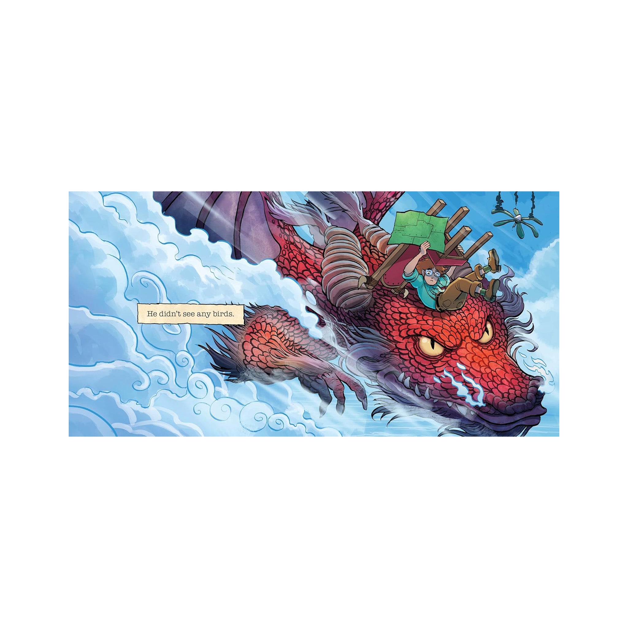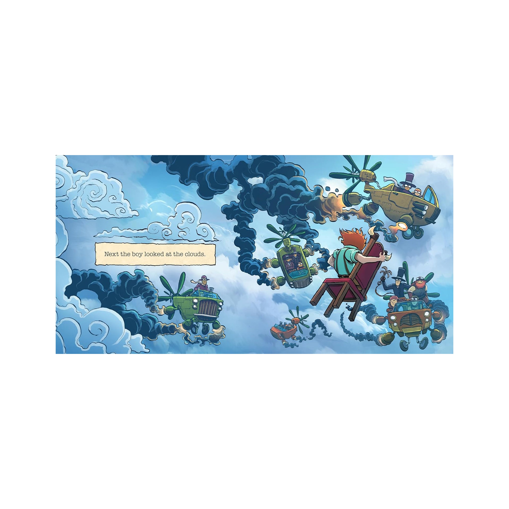 Don't peek behind the cover! Don't look at the pictures! And definitely don't follow along with the rip-roaring adventure the boy is experiencing. Stay focused on mundane things like sitting in chairs and doing homework. Any report of dragons or marauding airships is ridiculous! This book is BORING!