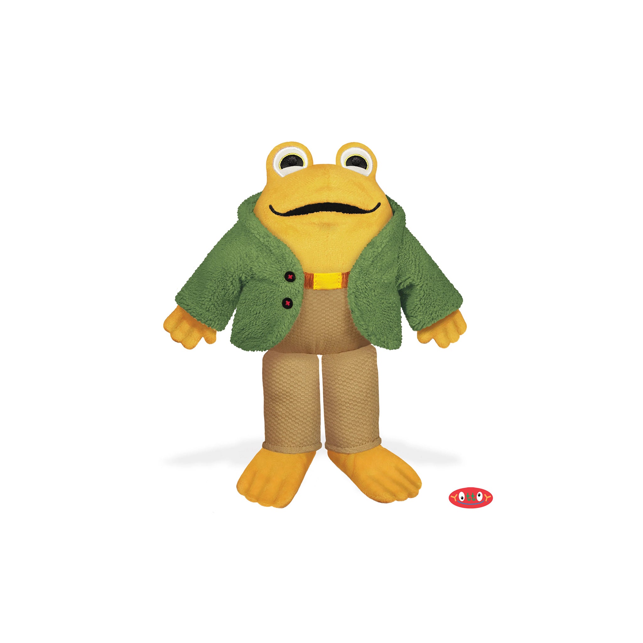Shorter and plumper than his friend Frog, Toad sits with open arms, snuggly soft in his fully lined green furry jacket with black felt buttons and red hand-stitches, tan pique pants, and grosgrain ribbon belt. Made of caramel-colored soft plush, detailed embroidered eyes with a heartfelt expression, it's hard to resist giving Toad the warm hug he longs for.