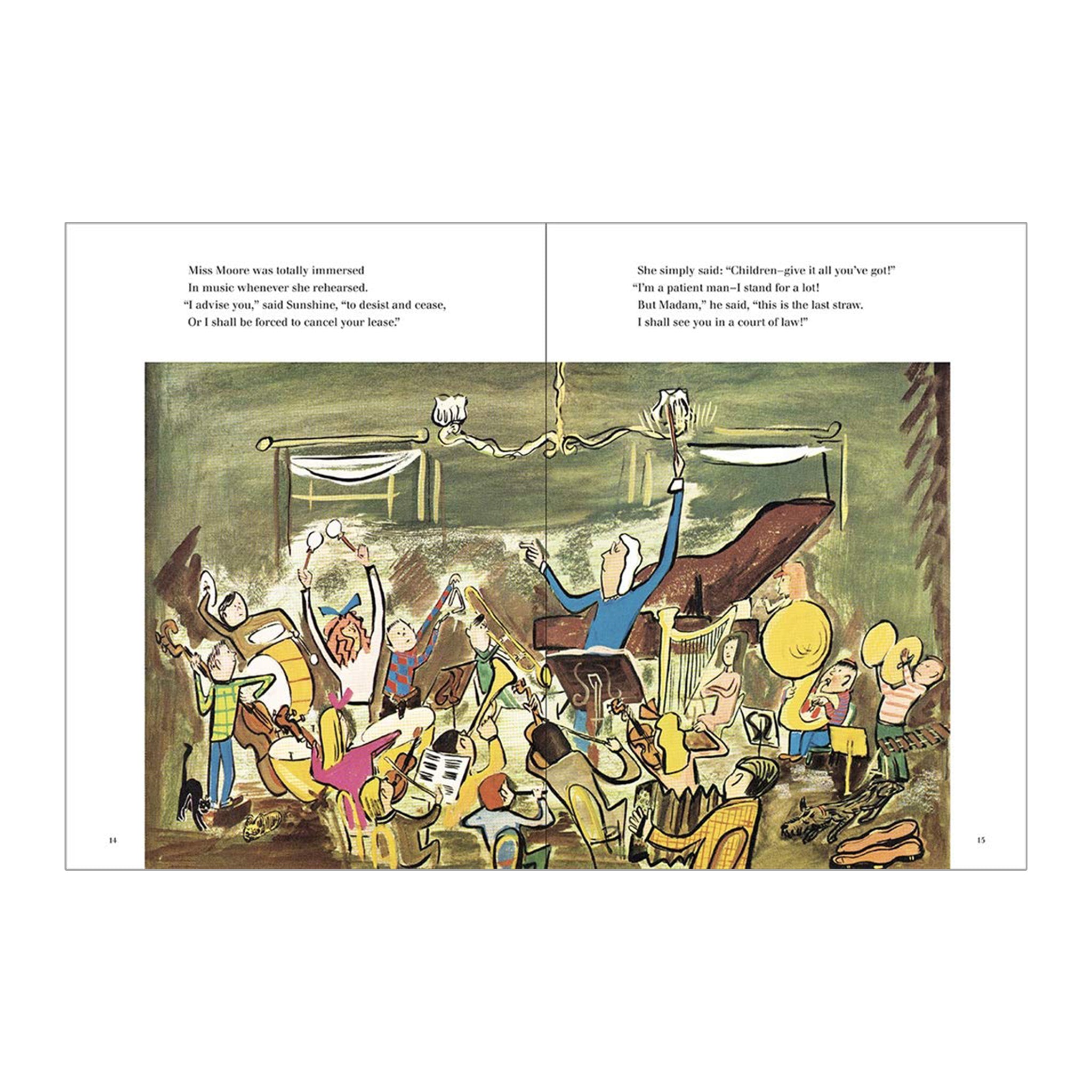 First published in 1950, this classic picture book by the creator of Madeline tells the story of a music teacher and her crotchety landlord who will do anything for peace and quiet. Readers will meet Miss Moore, a sweet and eccentric older woman who moves into an apartment in New York City and, with the help of her students, outwits her landlord, Mr. Sunshine, when he tries to evict her after learning that she intends to run a music school in her apartment. Full of charm, umbrellas, and a little bit of Christmas Eve magic, Sunshine―as the 1950 publication states―is an enchanting tale with the “gentle touch of Madeline, as well as some thoroughly ridiculous situations. [It is] a unique guide to New York City, showing its landmarks as they could only be seen through the eyes of Ludwig Bemelmans.”