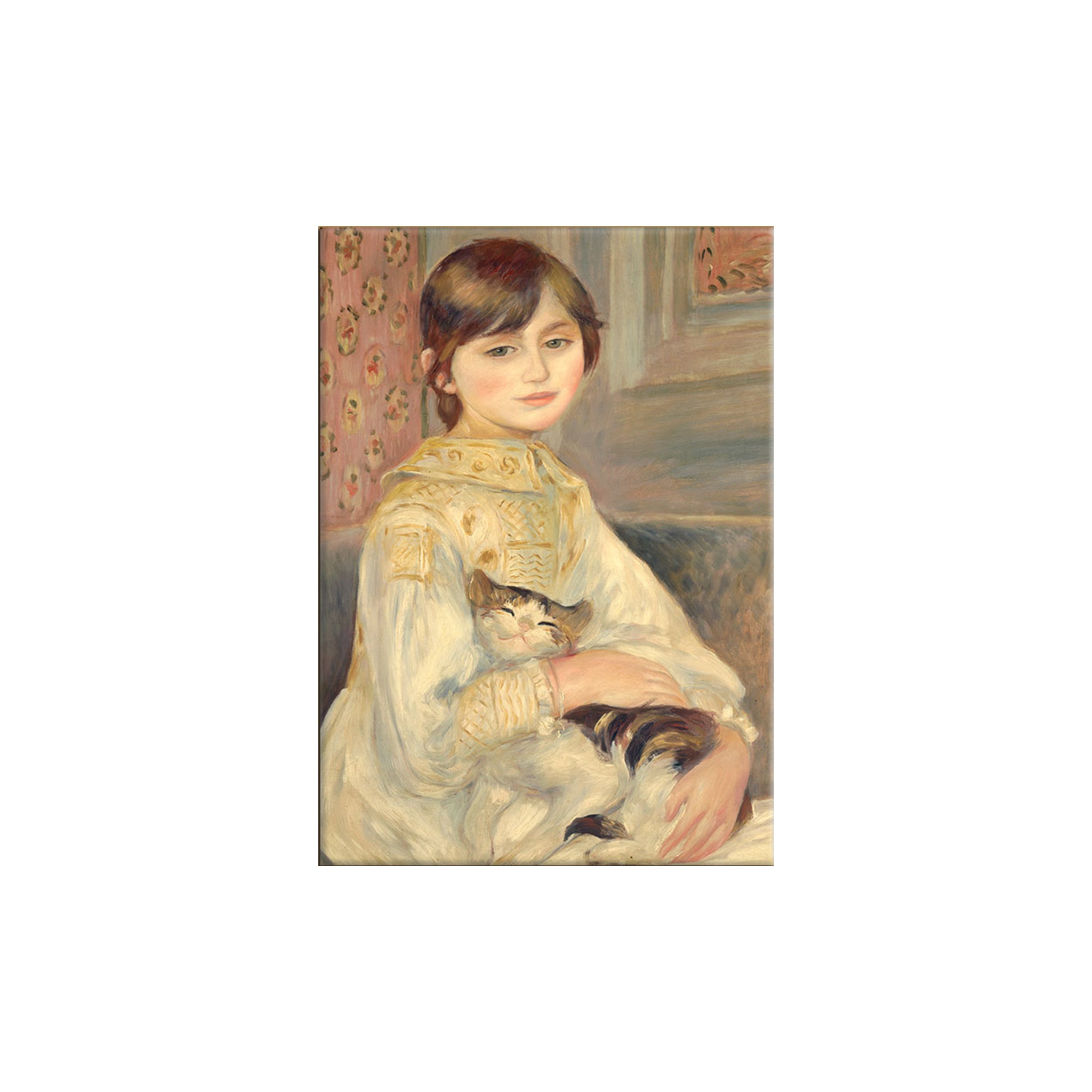 This popular painting from the collection of the Musée d'Orsay depicts Julie Manet, the niece of the famed French painter Édouard Manet and the daughter of the great impressionist painter Berthe Morisot, at age nine. Morisot and her husband Eugène Manet commissioned their good friend Pierre-Auguste Renoir to paint her portrait.