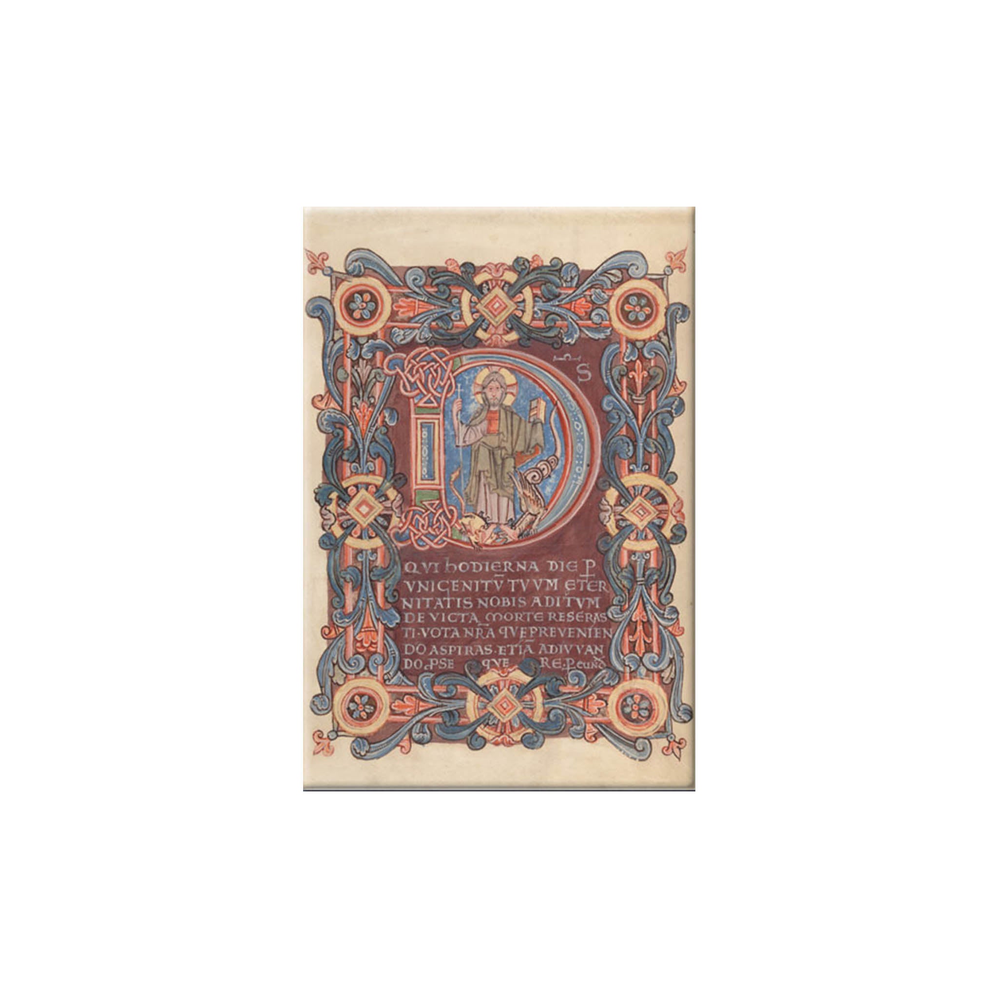 The psalms were among the most potent weapons deployed by Jews and Christians to defeat demons. Christ overcoming the forces of evil is a subject often used alongside Psalm 90:13, one of the most frequently quoted verses, "Thou shalt walk upon the asp and the basilisk: thou shalt trample under foot the lion and the dragon." This image, created around 1060 at the famous Benedictine monastery of Mont-Saint Michel, is from the Sacramentary named after it in the Morgan's collection. Here Christ is set within a large initial D of "D[eu]s" (God), the first word of the prayer, and is holding a staff and book surmounting the beasts of a winged dragon and defeated lion.