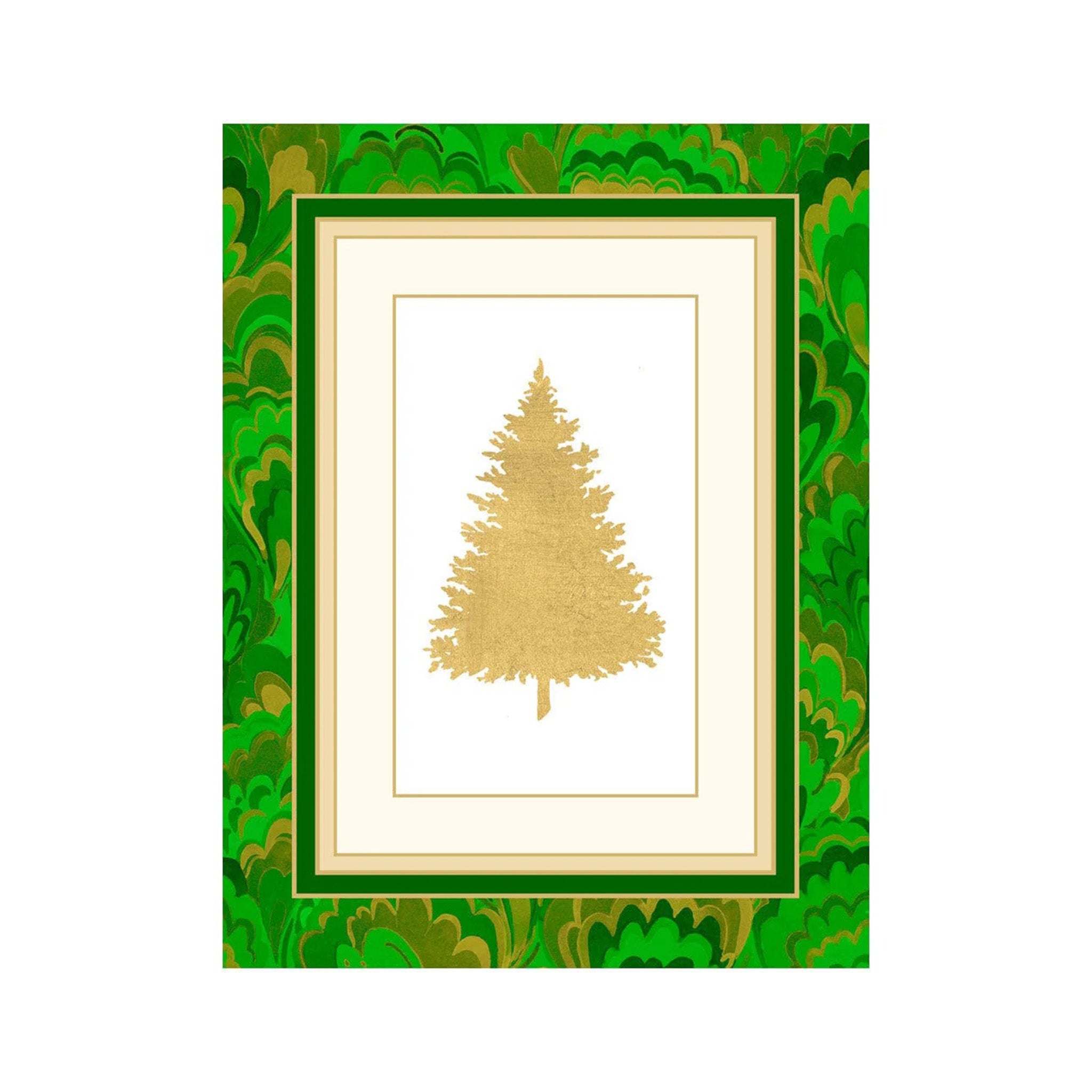 Green Marbled Gold Tree Holiday Boxed Notecards
