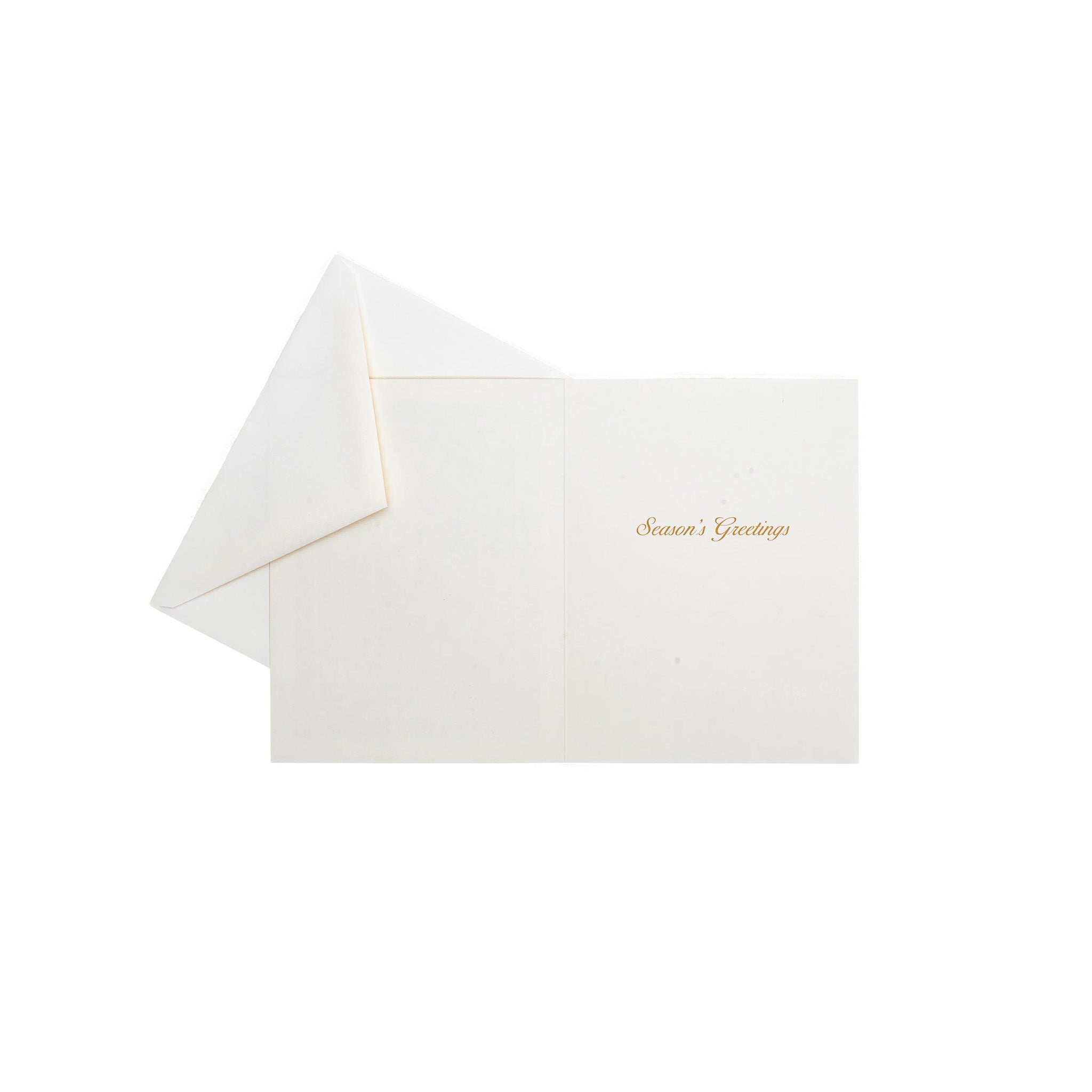Simply lovely. These gilded notecards include the message "Season's Greetings". Boxed set of 15 cards and envelopes.