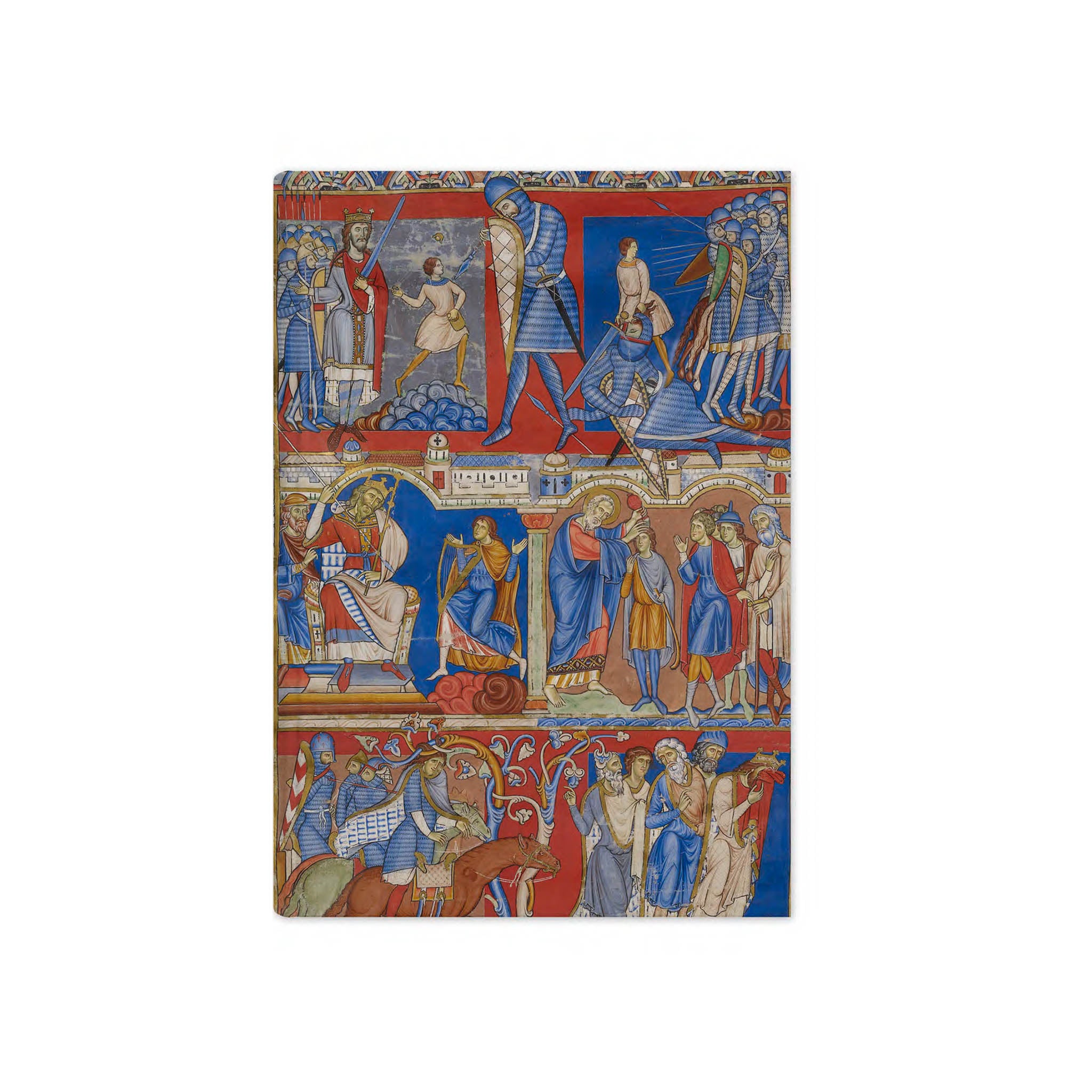 This detailed image of scenes from the life of David is colorful and energetic and was created in a way that almost feels similar to a comic or graphic novel. Keep any medievalist inspired on the go with this colorful hardcover journal.