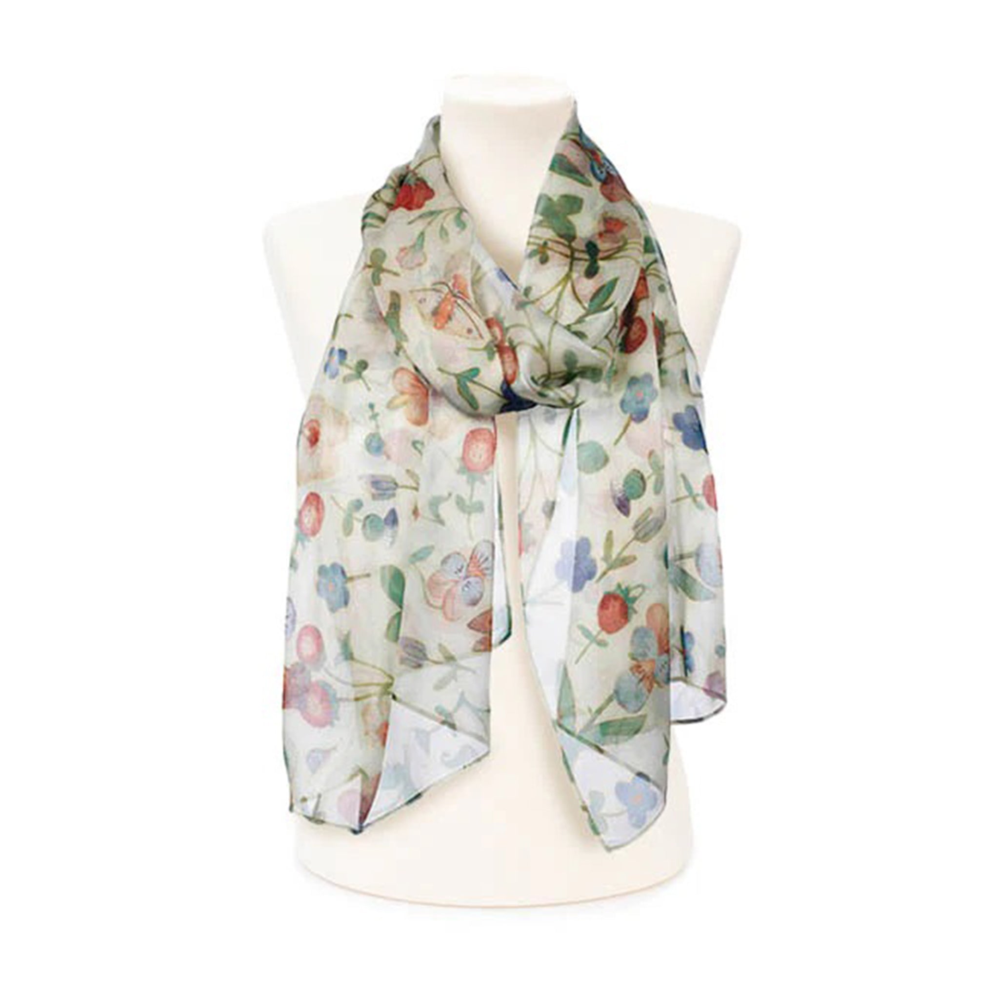 This lovely chiffon silk scarf is a favorite in the Morgan Shop! The design with fruits and flower details on an ivory background is inspired by a book of hours manuscript that is part of the collection of the Fitzwilliam Museum in Cambridge, UK.