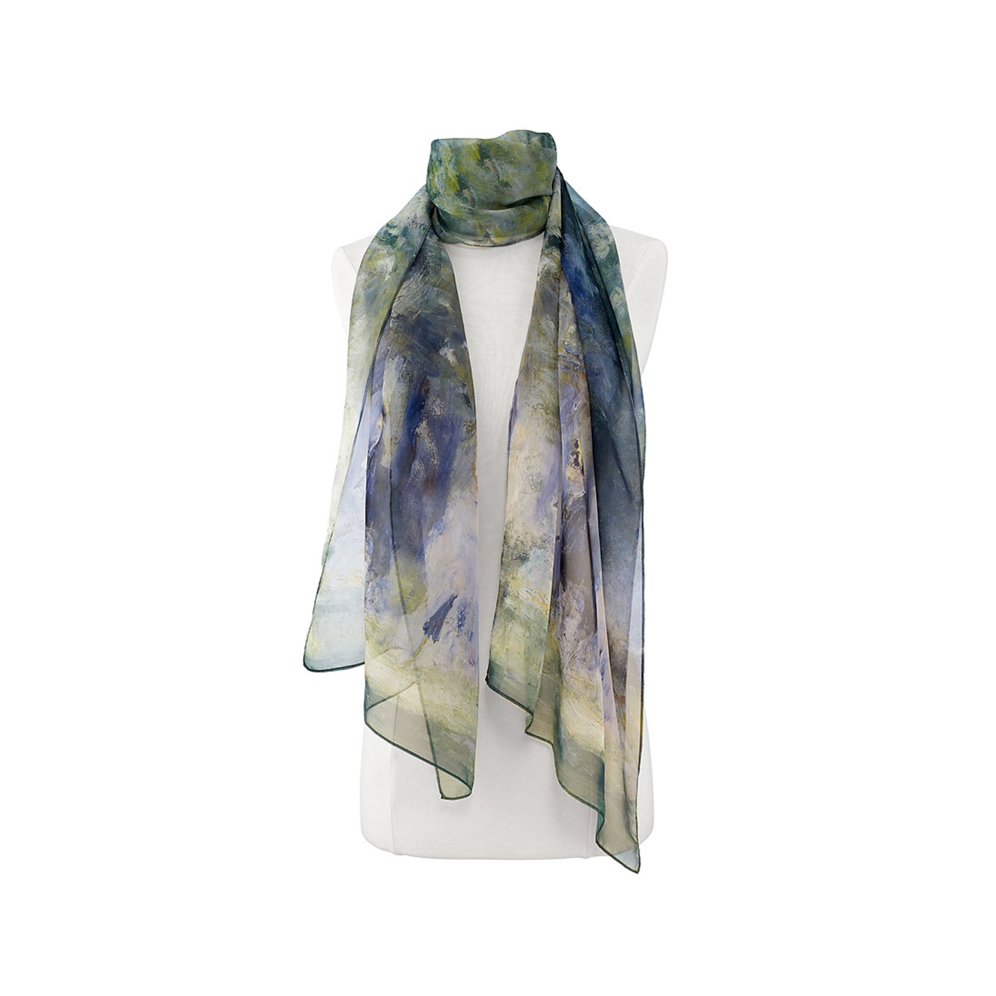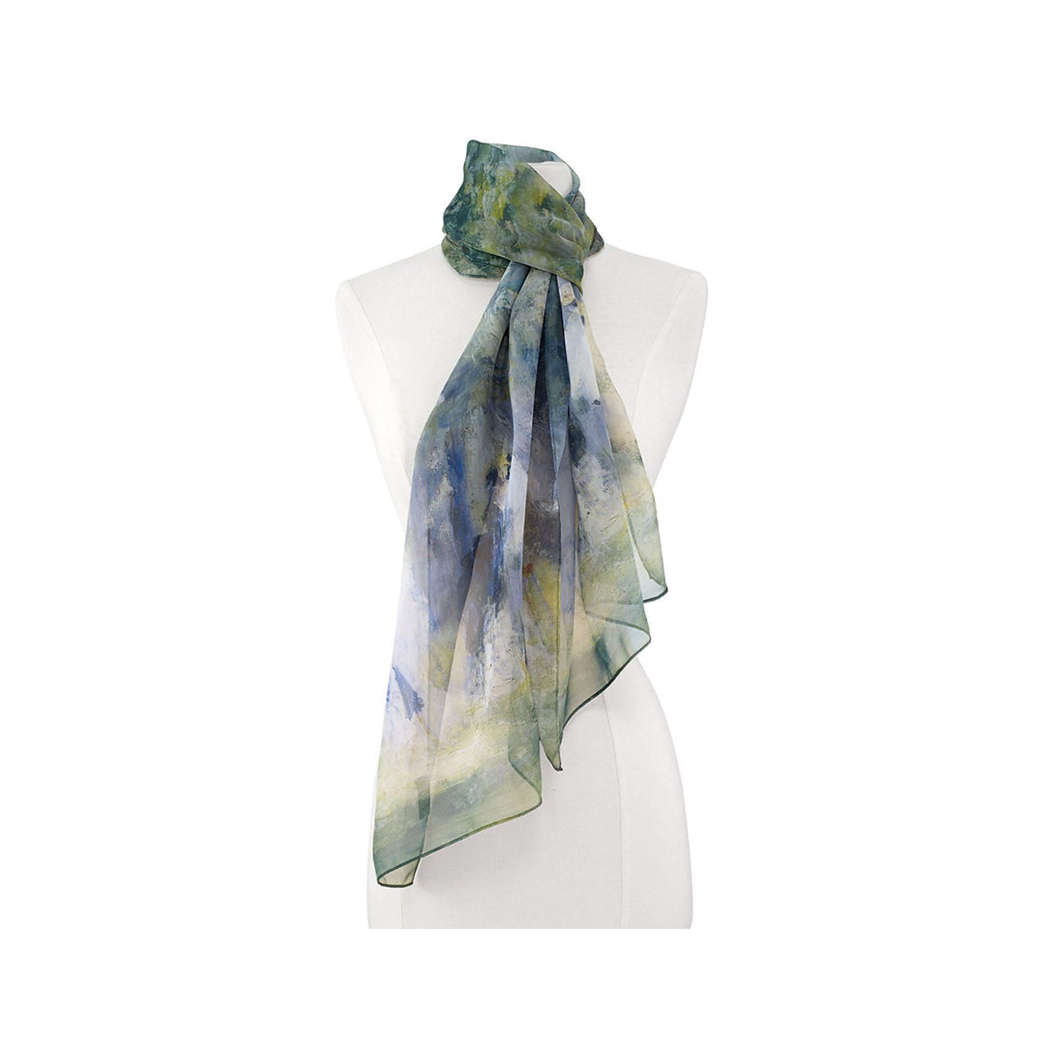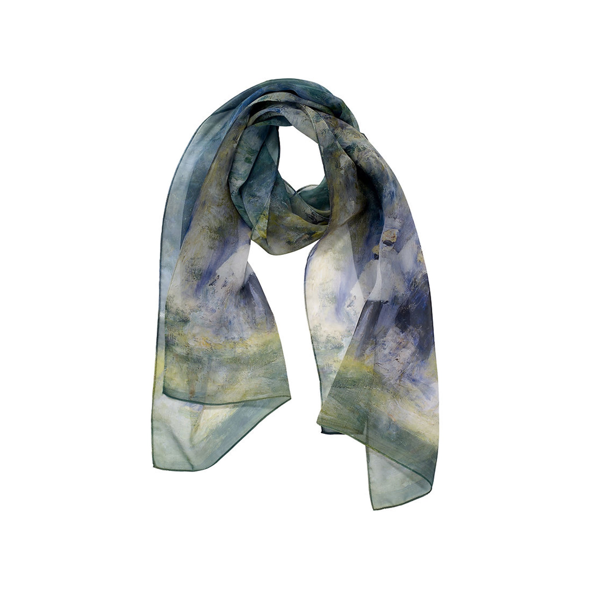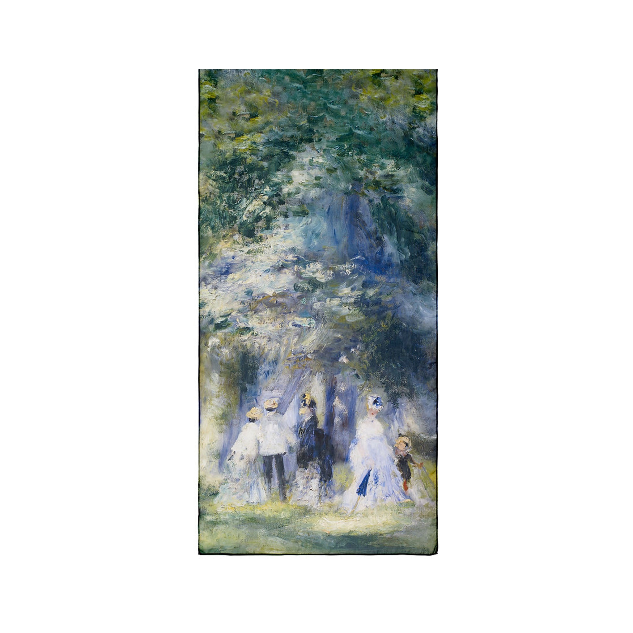 This lovely sheer scarf features a detail from Renoir's painting In the Park at Saint-Cloud completed in 1866. The colors from this painting and the sheer, soft fabric of this scarf will complement any wardrobe!