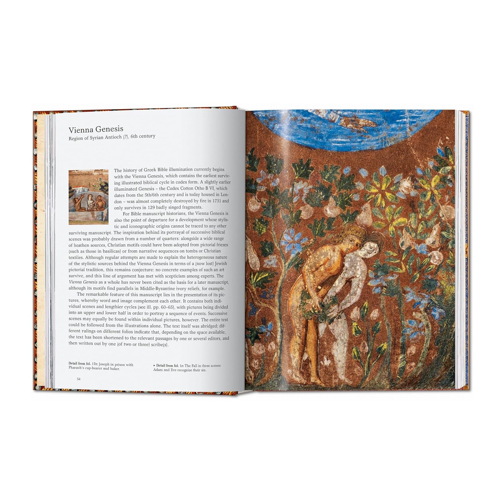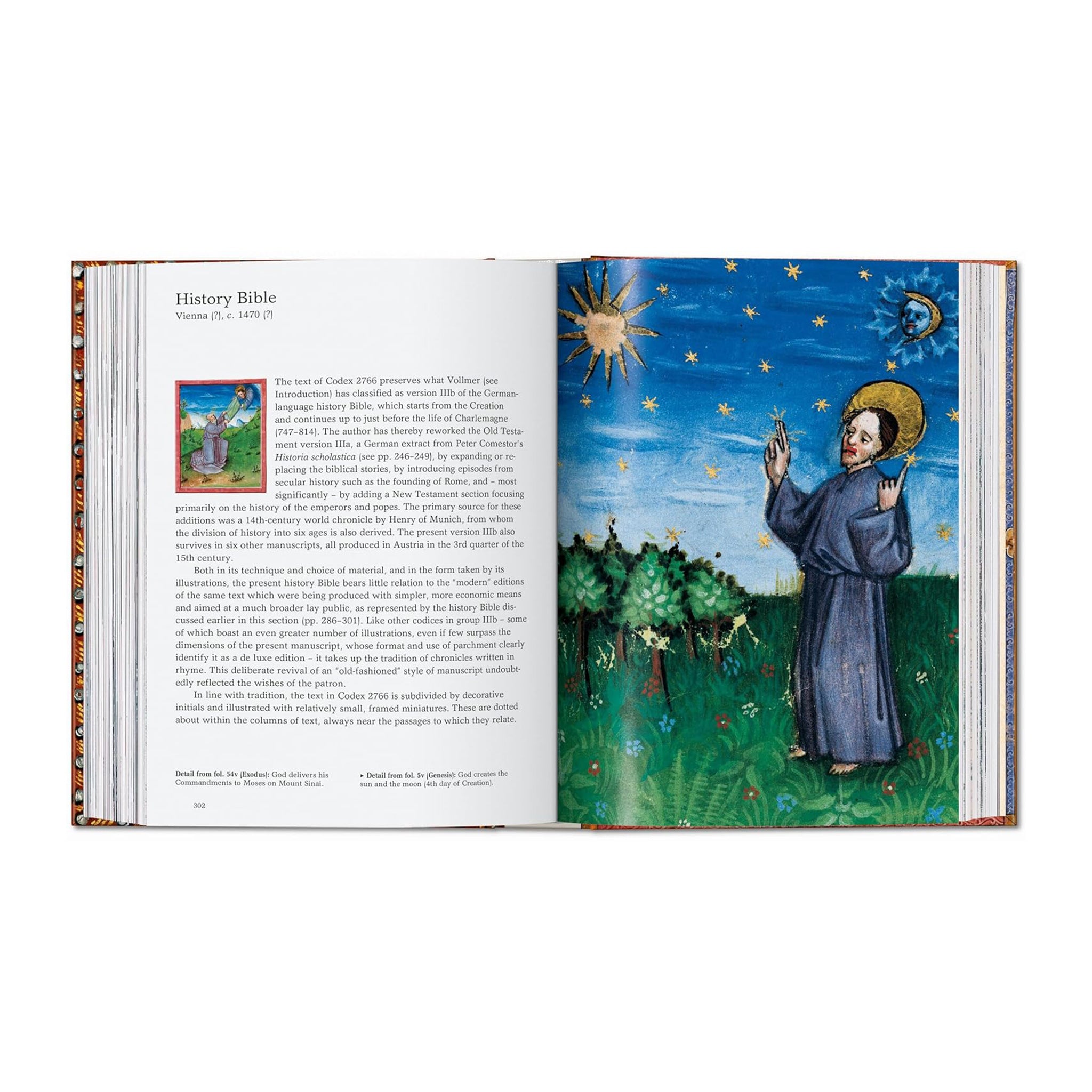 Texts by Andreas Fingernagel, Stephan Füssel, Christian Gastgeber, and a team of 15 scientific authors describe each manuscript in detail, exploring both the evolution of the Bible and the medieval understanding of history. A glossary of important terms is also included so that those not versed in bible history can enjoy the texts as well.
