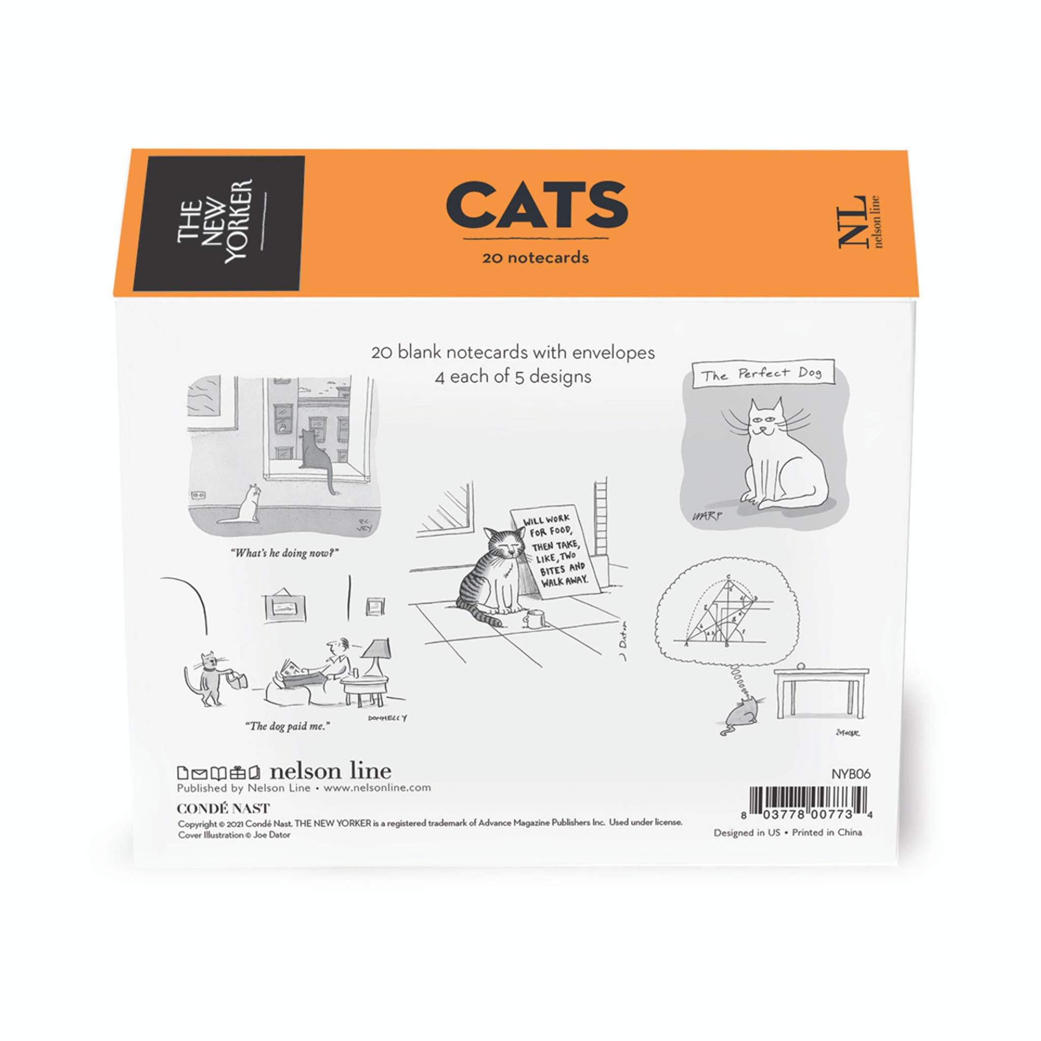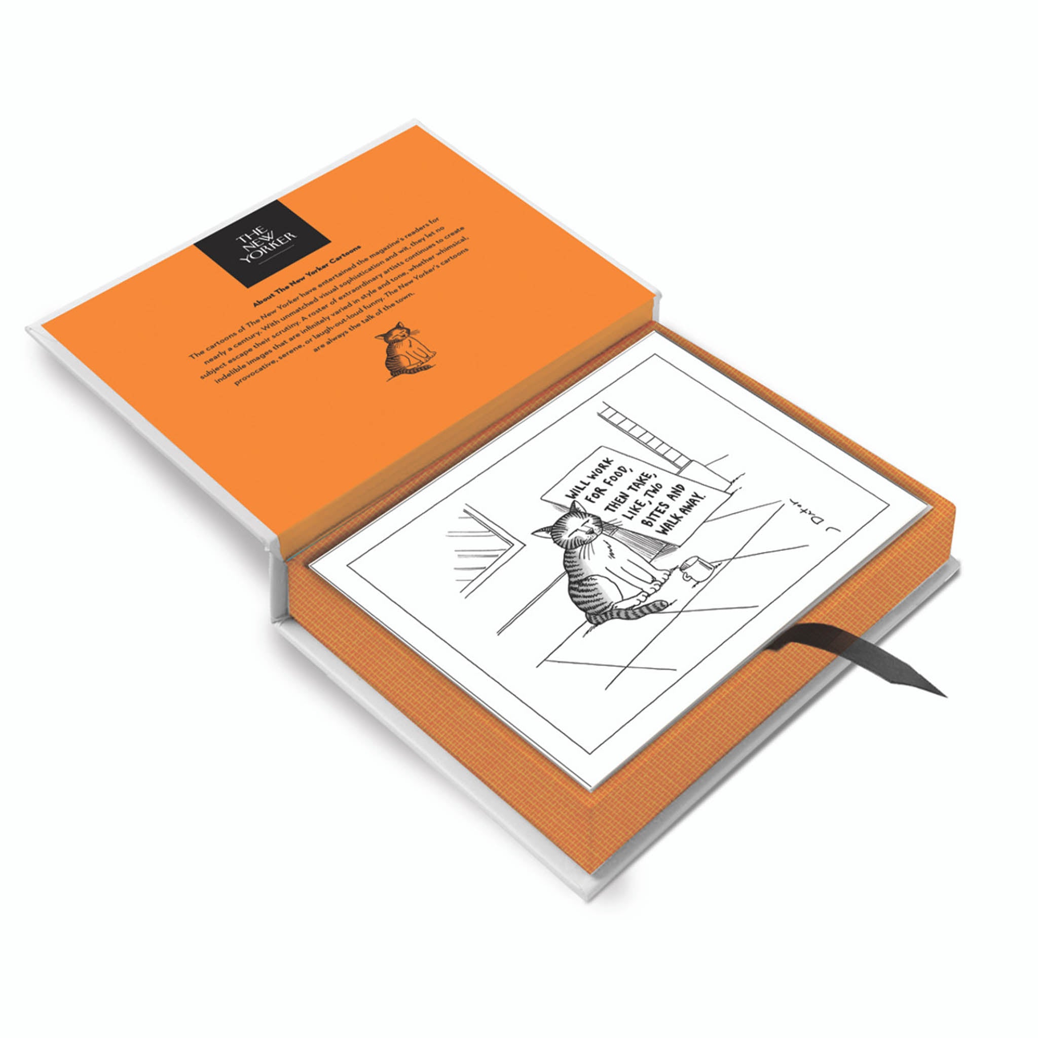 The refined look of the New Yorker Cats Boxed Notes, the fine paper note cards and matching envelopes, belies the curiosity of the cartoon cats inside. Cute and clever, these cards will find a warm reception wherever they end up.