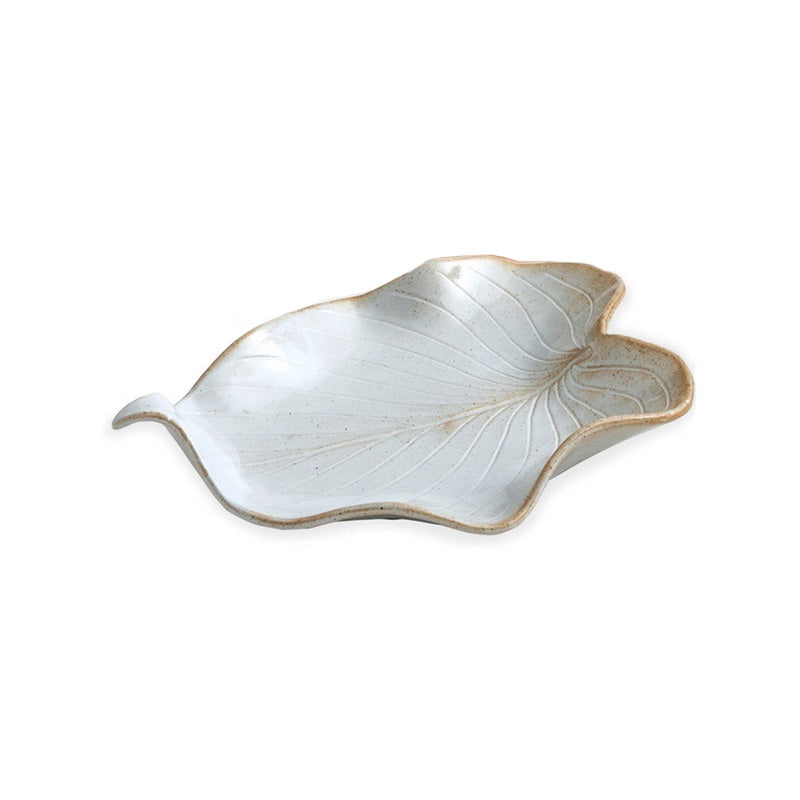 Classic white porcelain with a rustic look, this leaf dish is ready to decorate your dining table. Designed in the USA by women-owned and operated Rosanna.