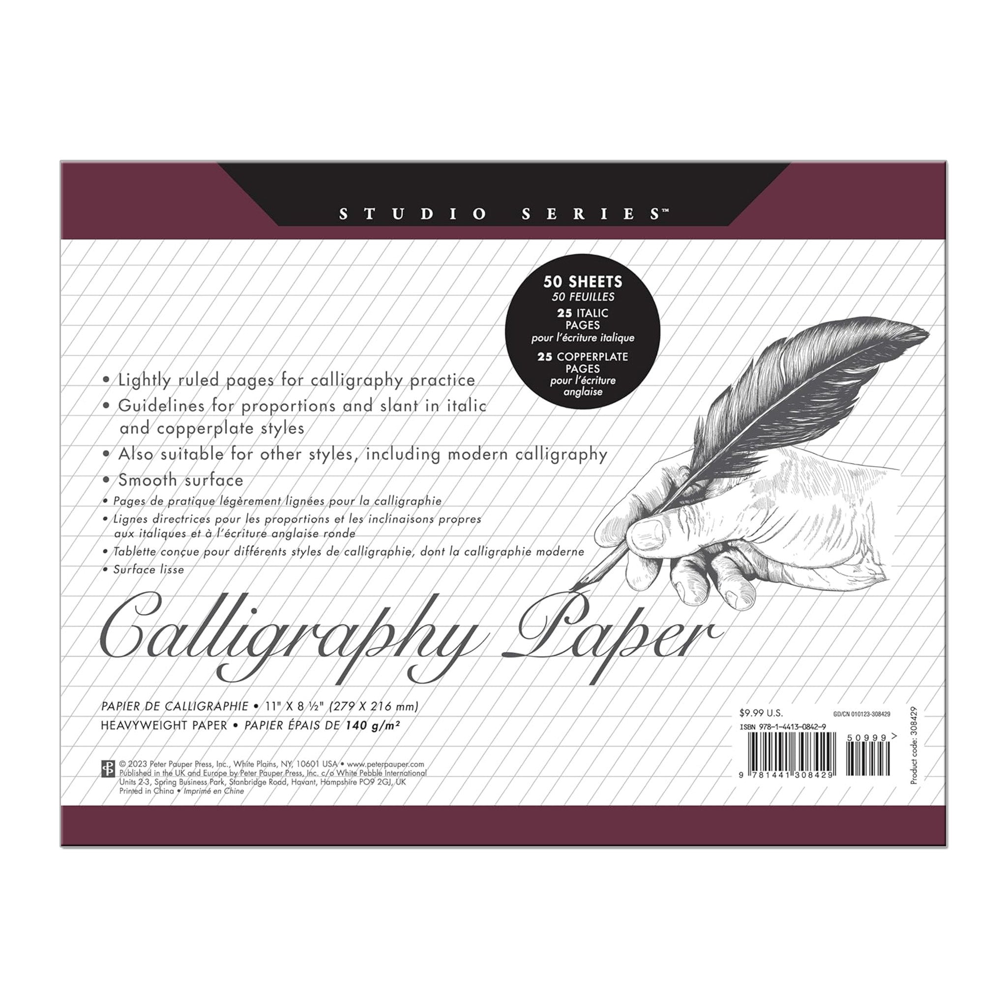 Super-smooth calligraphy practice pages are lightly ruled for Italic and Copperplate, but are versatile enough for practicing other writing styles!