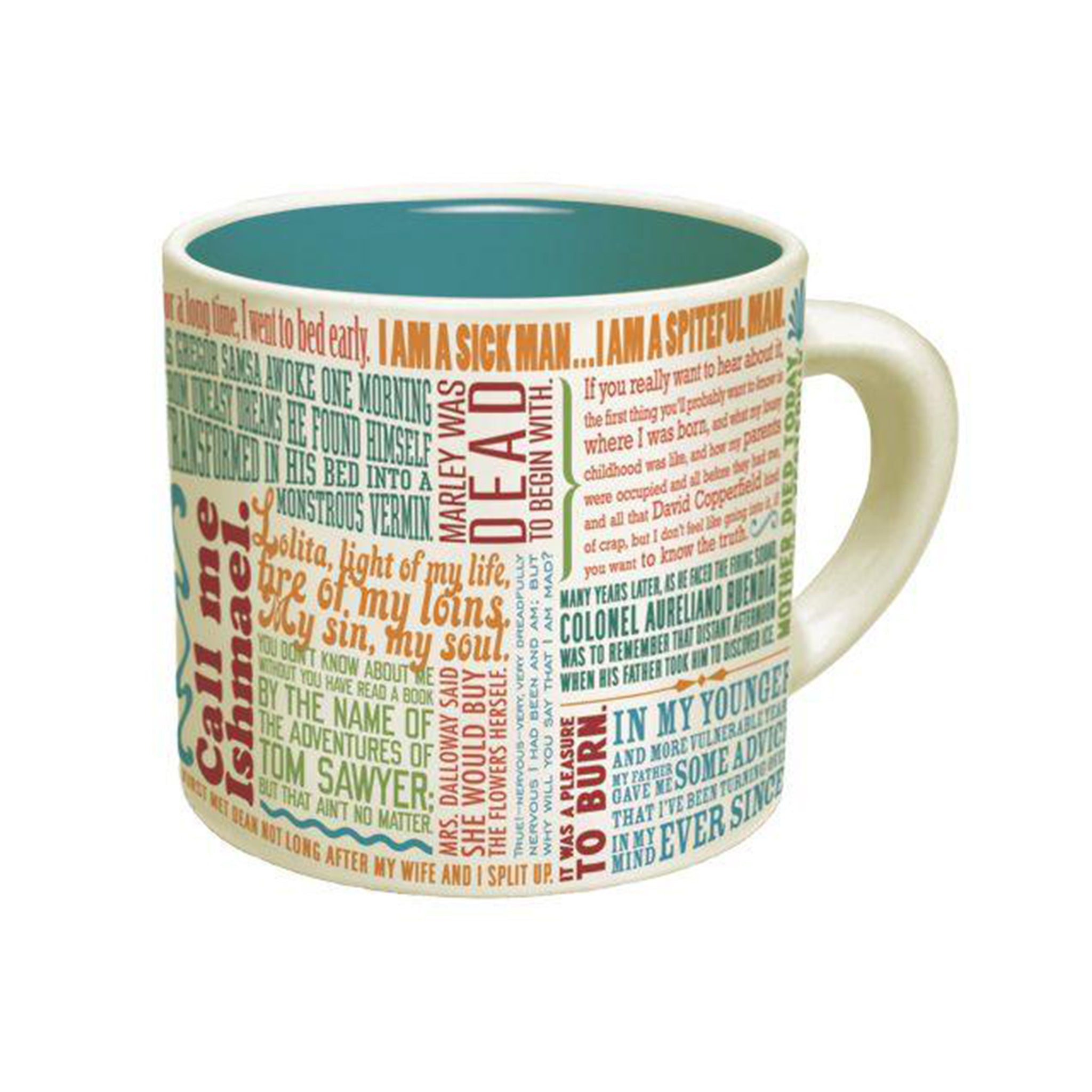 Featuring opening lines of some of the greatest works of literature from "It was the best of times, it was the worst of times" to "Call me Ishmael" and 22 more. A cup of joe in this mug is sure to give you the literary inspiration to tackle your day.